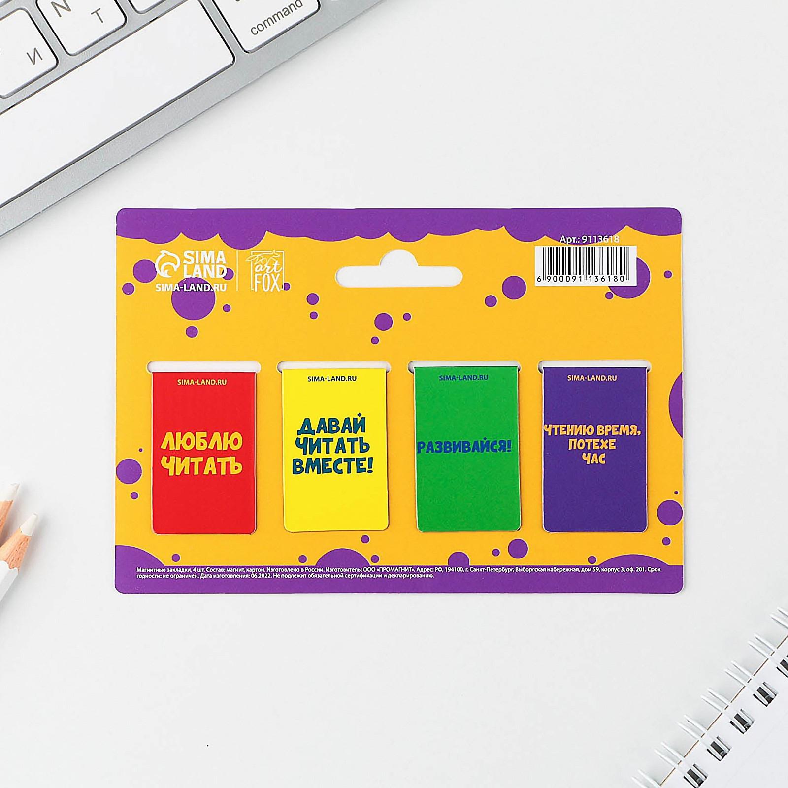 Набор магнитных закладок 4 штуки на подложке «Весёлые закладки»