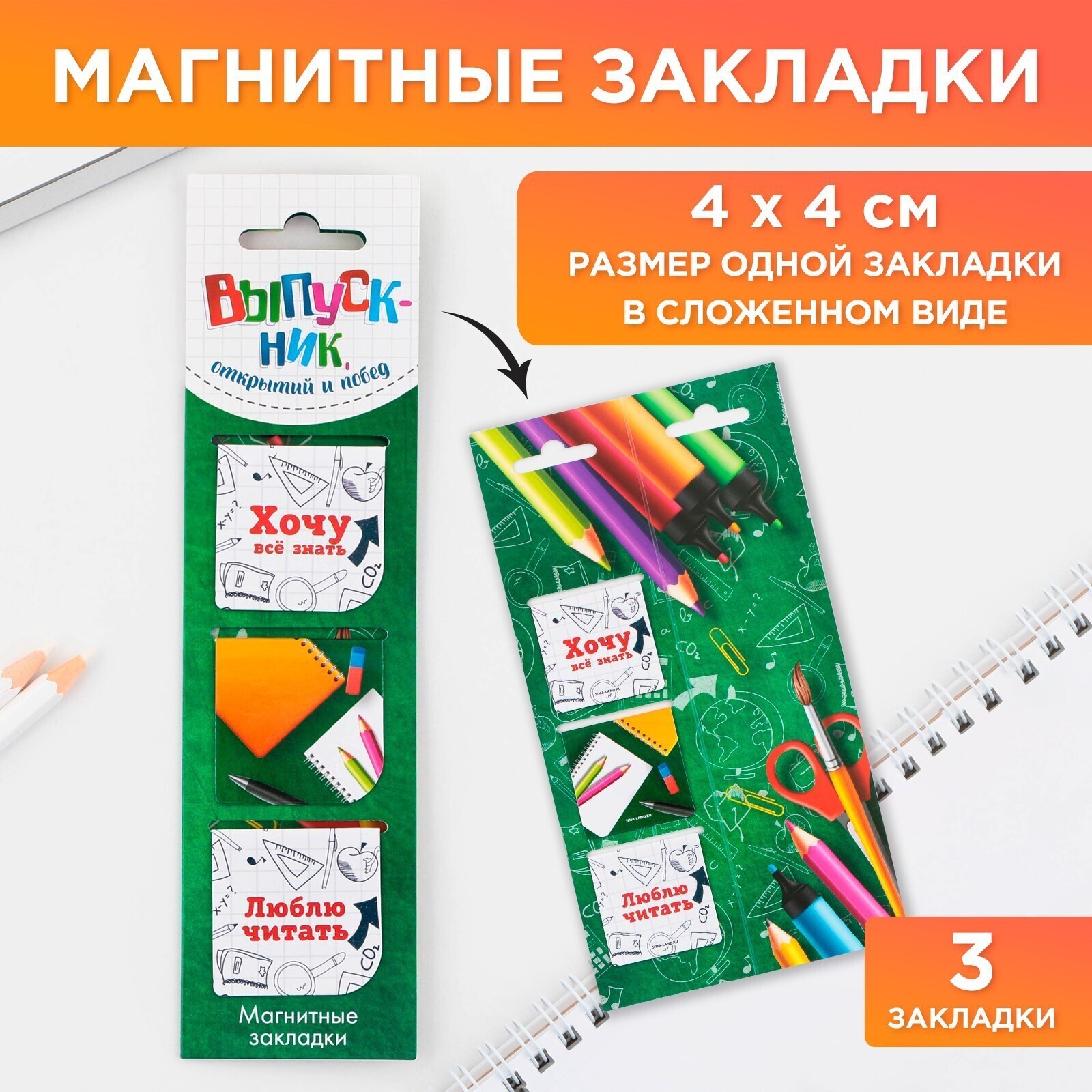 Закладки магнитные на подложке для книг «Выпускник», 3 штуки . обладают уникальным дизайном, который делает их отличным сувениром к любому празднику!