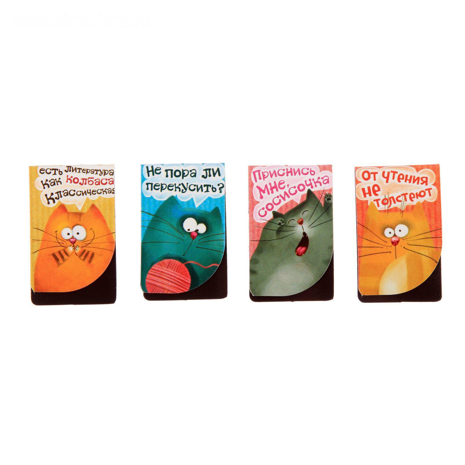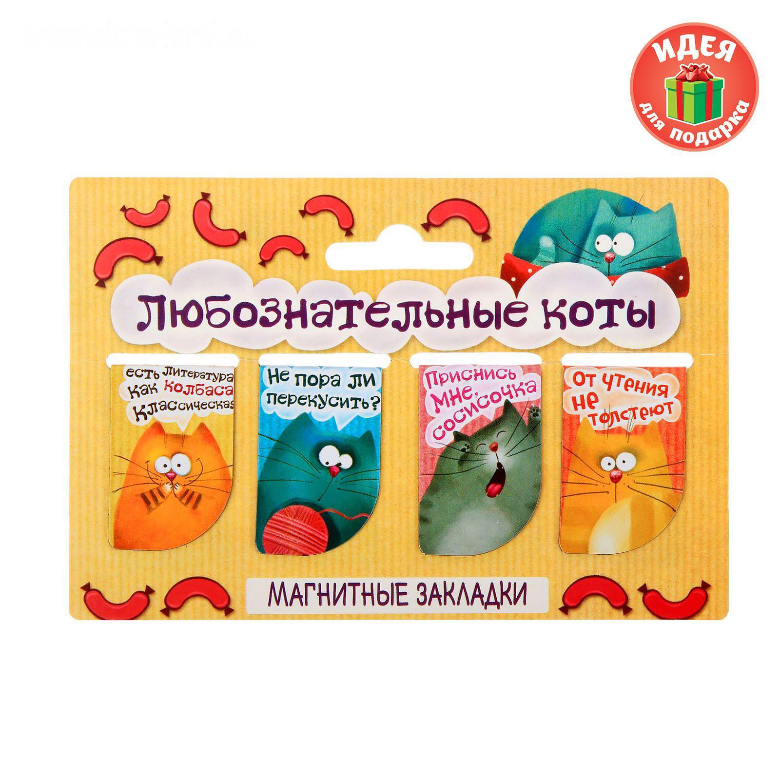 Набор магнитных закладок "Любознательные коты", 4 шт.