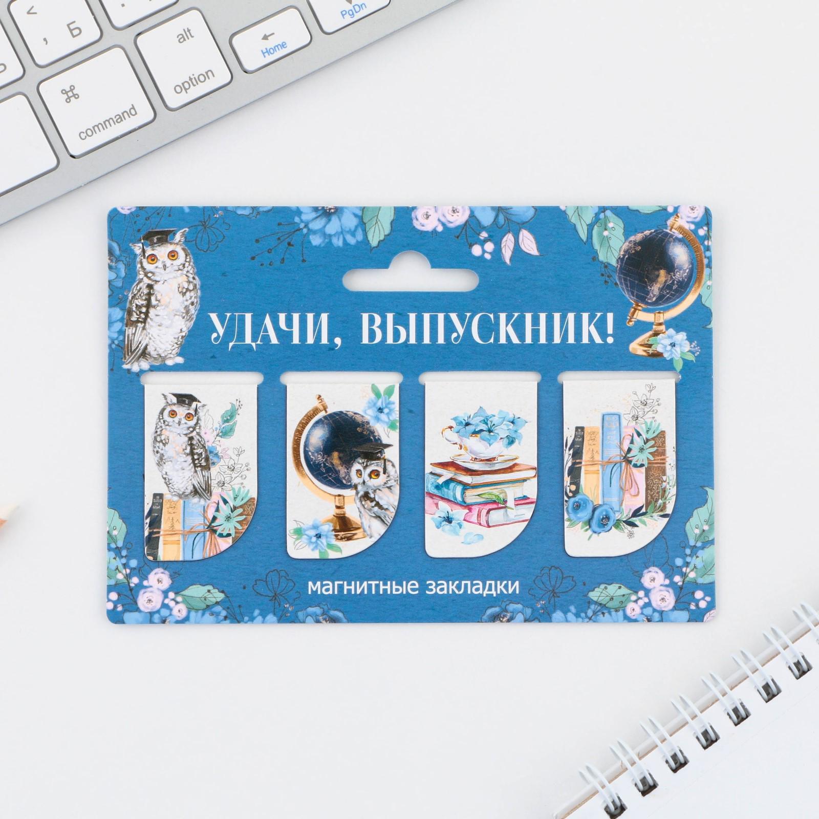 Закладки магнитные на подложке для книг «Удачи, выпускник!», 4 штуки . обладают уникальным дизайном, который делает их отличным сувениром к любому празднику!