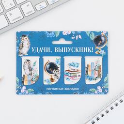 Магнитные закладки "Удачи, выпускник. Сова.", на открытке, 4 шт.