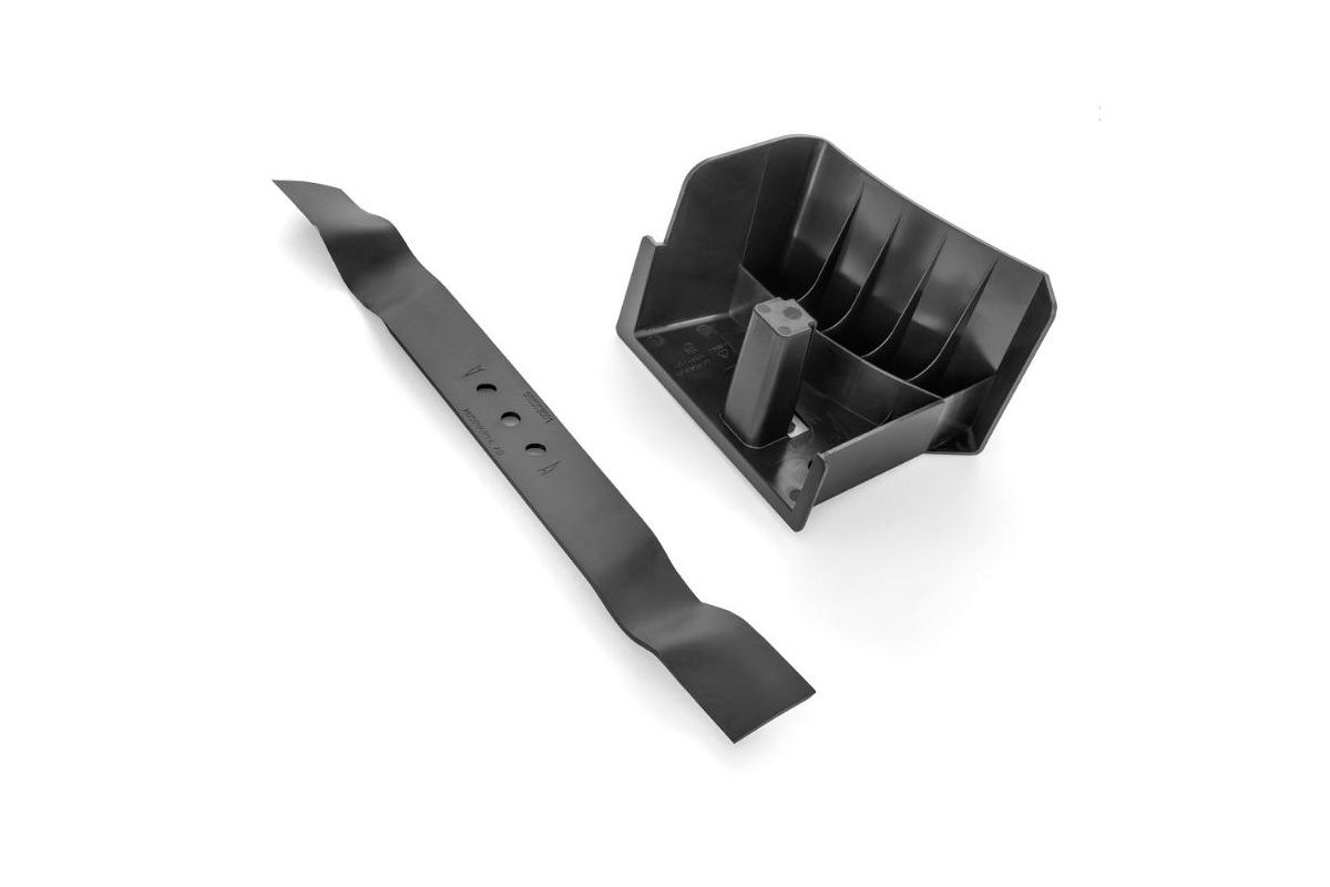 С помощью этого комплекта трава разрезается на мелкие кусочки, которые моментально разлагаются и возвращаются на газон в качестве удобрения.