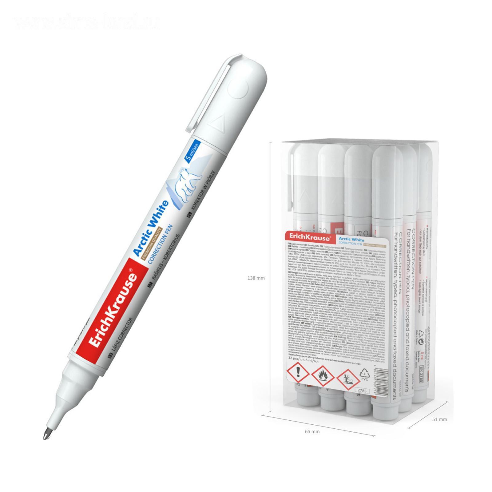 Ручка-корректор ErichKrause Arctic White, 5 мл, с металлическим наконечником, специальная помповая система подкачки жидкости