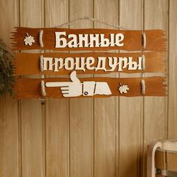 Табличка для бани 47.5×22 см "Банные процедуры, налево"