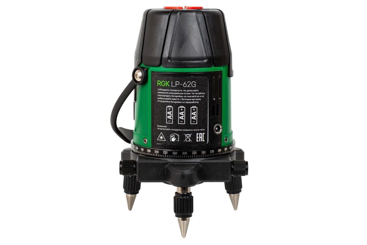 RGK LP-62G – лазерный уровень для построения линий. Дальность проекции без приёмника – 20 м. Погрешность ±0,2 мм/м. Пригодится на строительных и ремонтных работах в помещении или на улице.