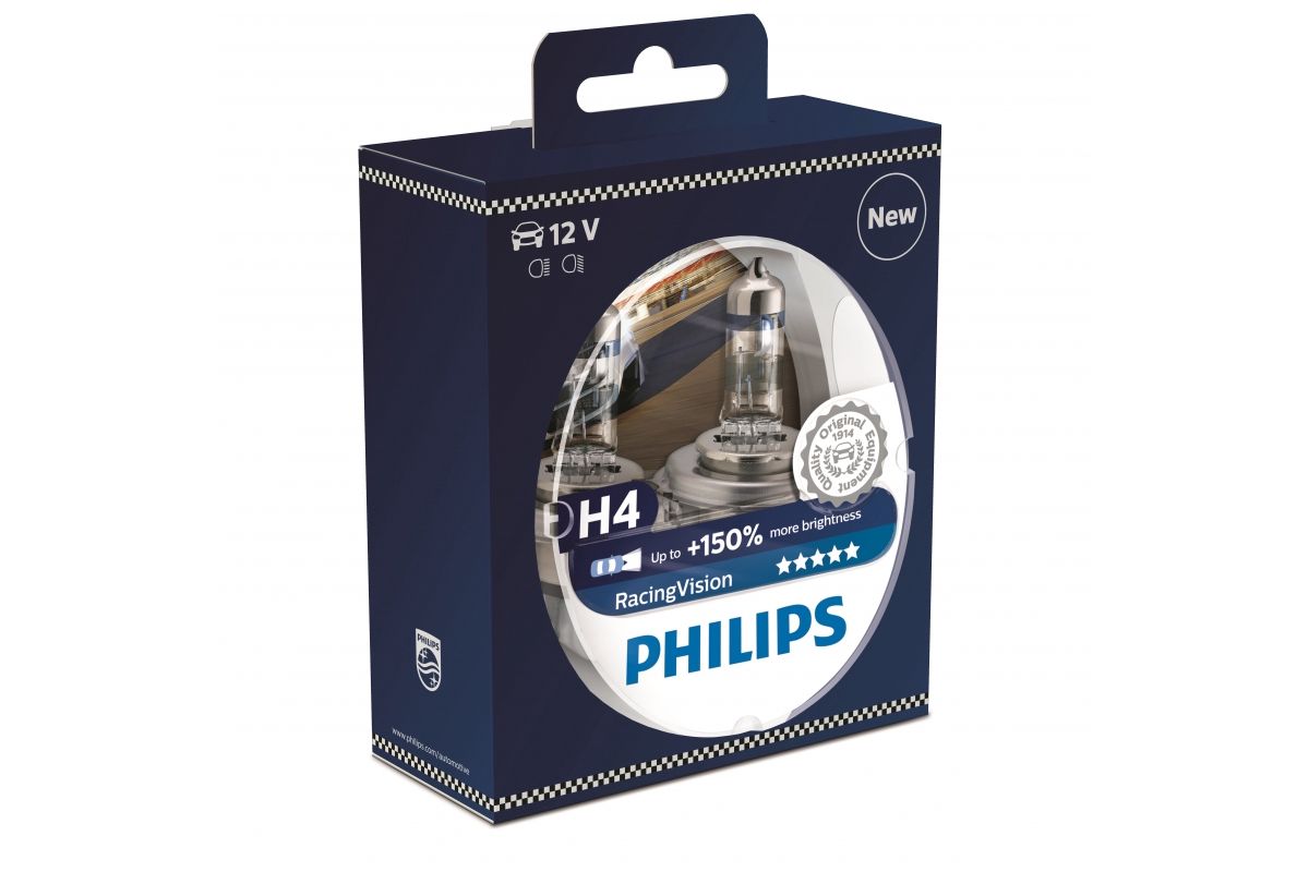 автомобильная H4 12V- 60/55W (P43t) Racing Vision +150 (2шт.) (Philips) галогеновая блистерная упаковка 2 шт .