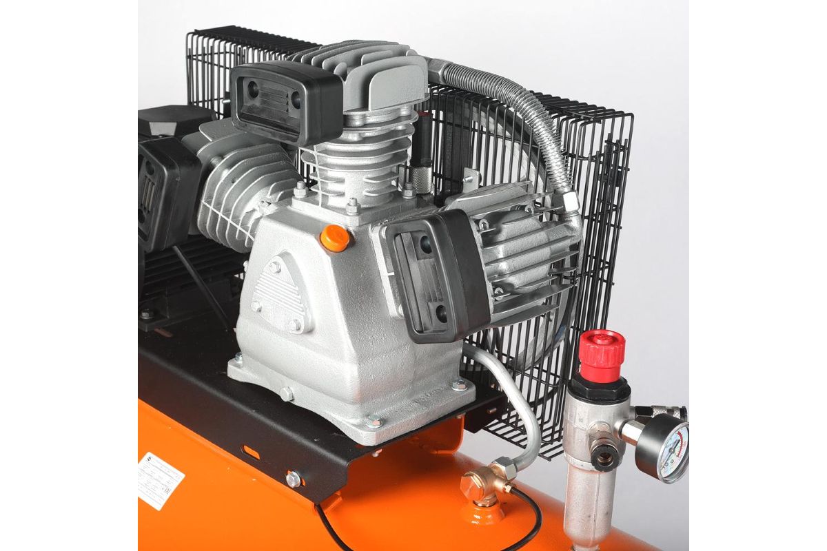 Трехцилиндровый компрессор с ременной передачей и увеличенной производительностью. Применяется для сервисных, ремонтных работ в гараже, на шиномонтаже и автосервисе.