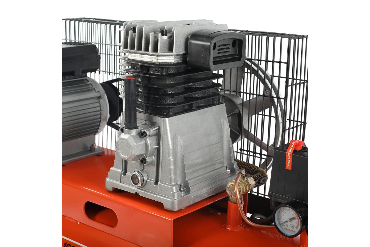- Ременной привод увеличивает срок службы за счет повышения износоустойчивости деталей компрессора: меньшее число оборотов по сравнению с прямым приводом; сглаживает пиковые нагрузки на двигатель; два мощных чугунных цилиндра и алюминиевая головка;