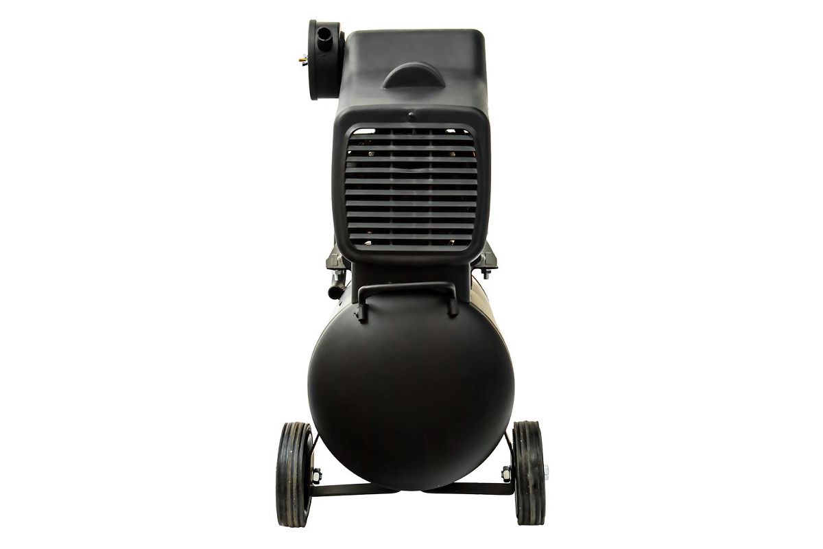 Компрессор установлен на пару колёс и прорезиненную ножку. Удобно перемещать за встроенную ручку.