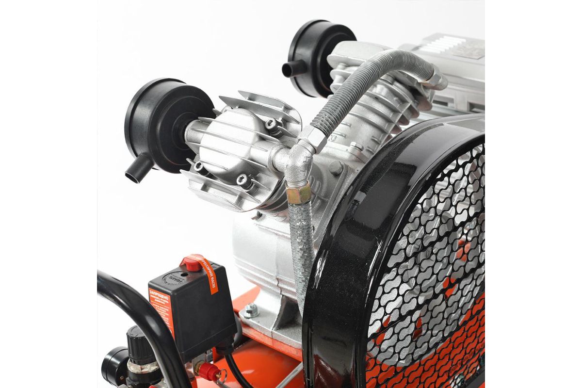 Двухцилиндровый компрессор с ременной передачей и увеличенной производительностью. Применяется для сервисных, ремонтных работ в гараже, на шиномонтаже и автосервисе.
