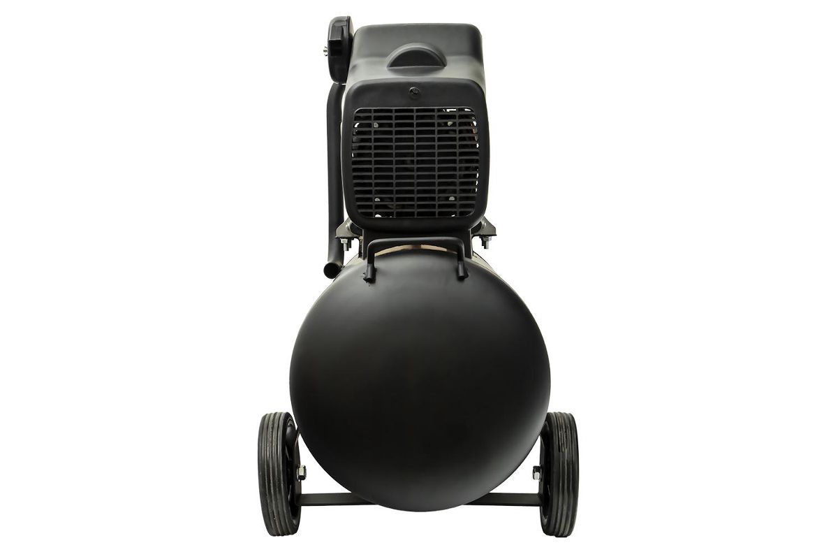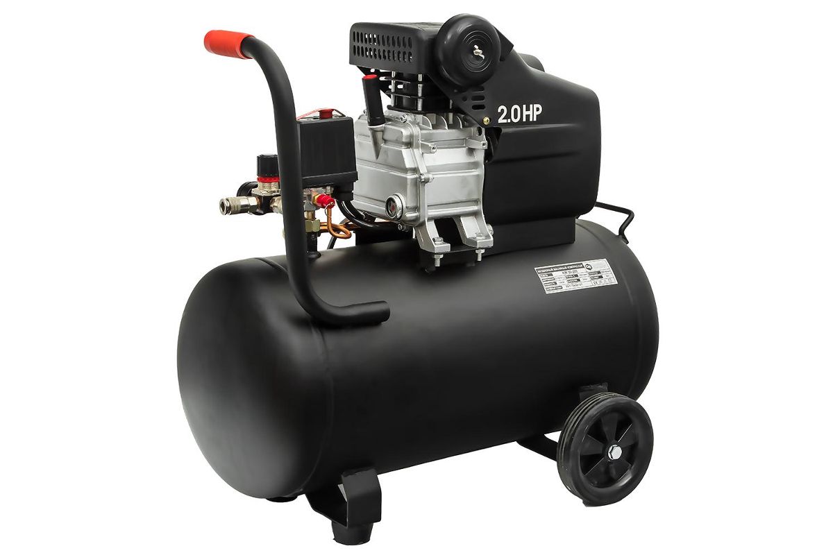 Компрессор установлен на колеса и ножки. Легко передвигать или загружать в багажник за ручку.
