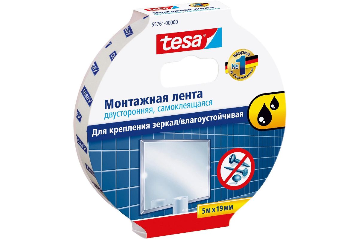 Это двусторонняя самоклеящаяся лента с суперсильной адгезией, для влажных помещений, таких как ванные комнаты. Эта лента специально создана для прочного крепления настенных зеркал в ванных комнатах без повреждения плитки.