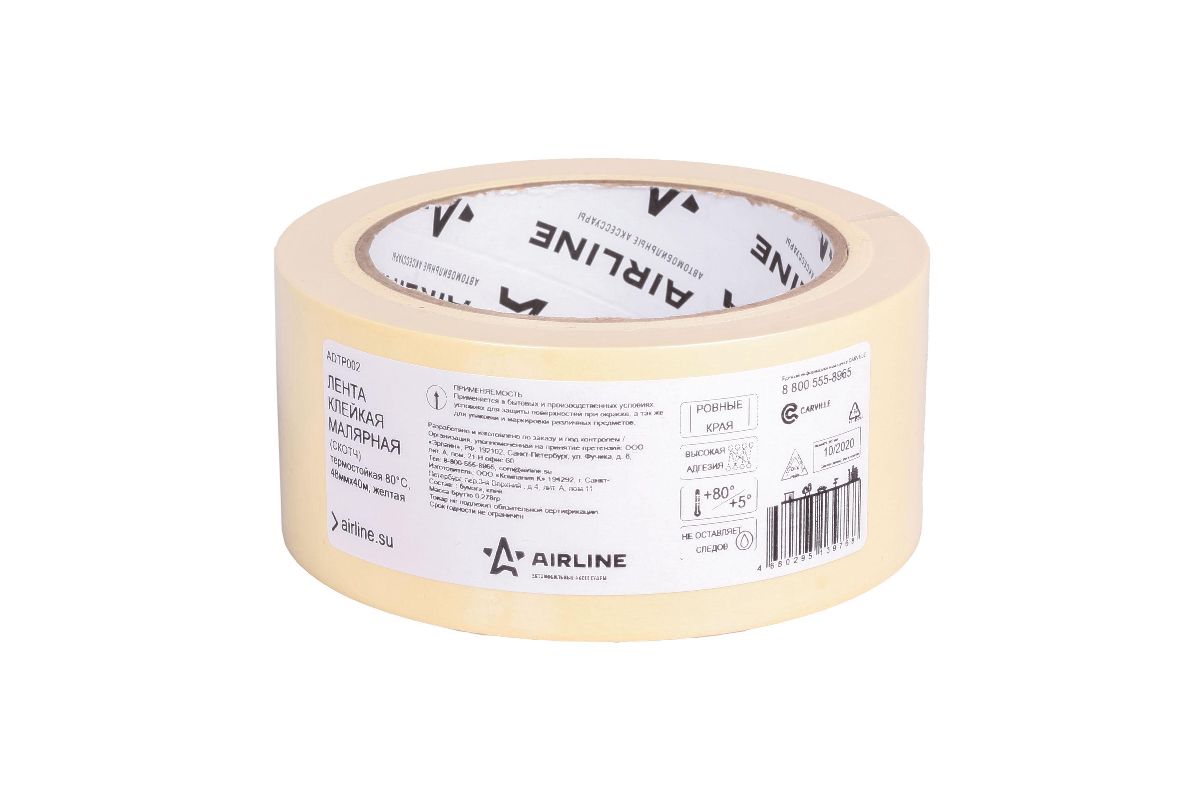 Лента клейкая малярная (скотч) термостойкая 80°C, 48 мм*40 м, желтая (ADTP002) AIRLINE