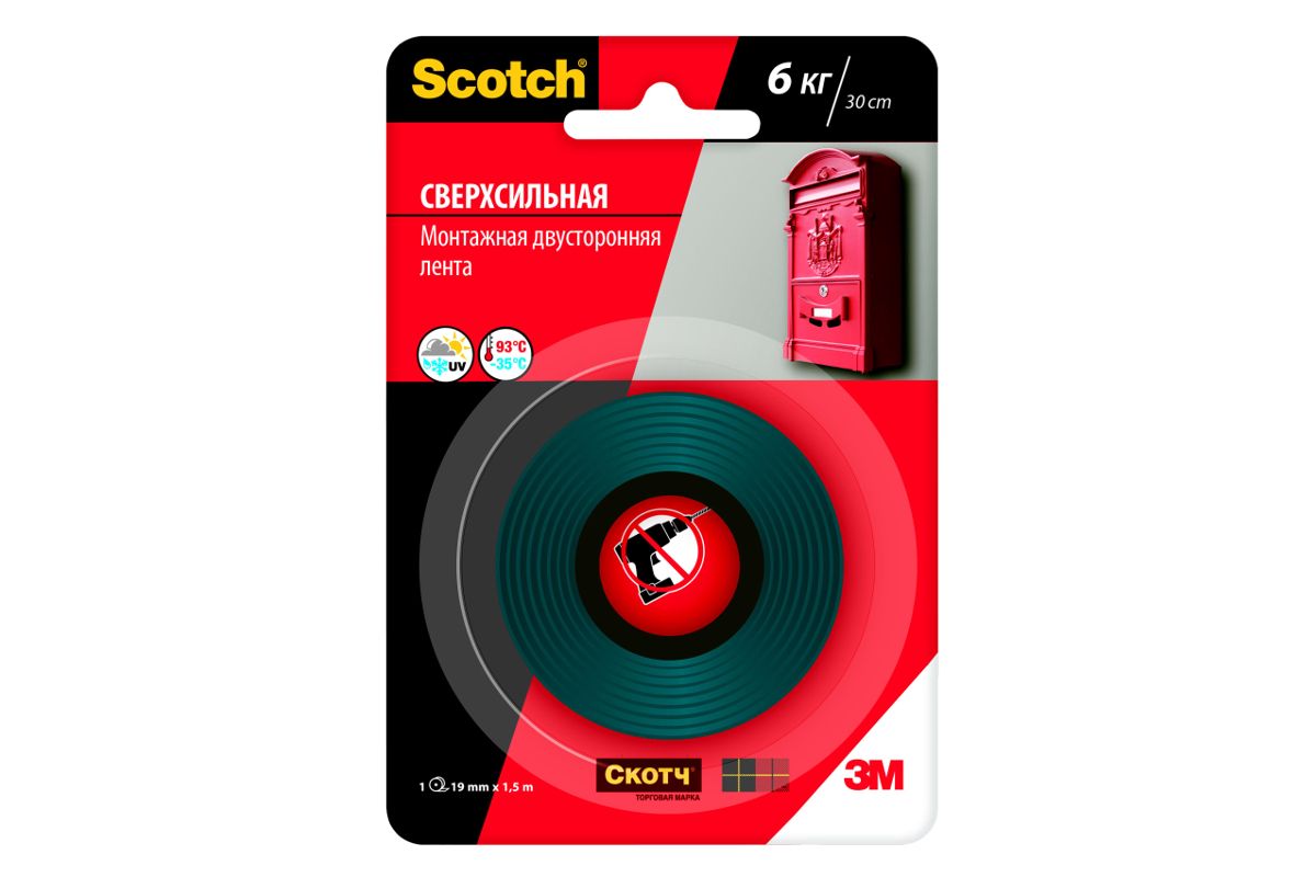 Клейкая монтажная лента сверхпрочная 3М Scotch 19ммх1.5м