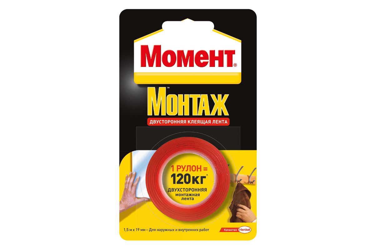 Клеящая монтажная двусторонняя лента HENKEL МОМЕНТ (1,5м) 120 кг 1714773.