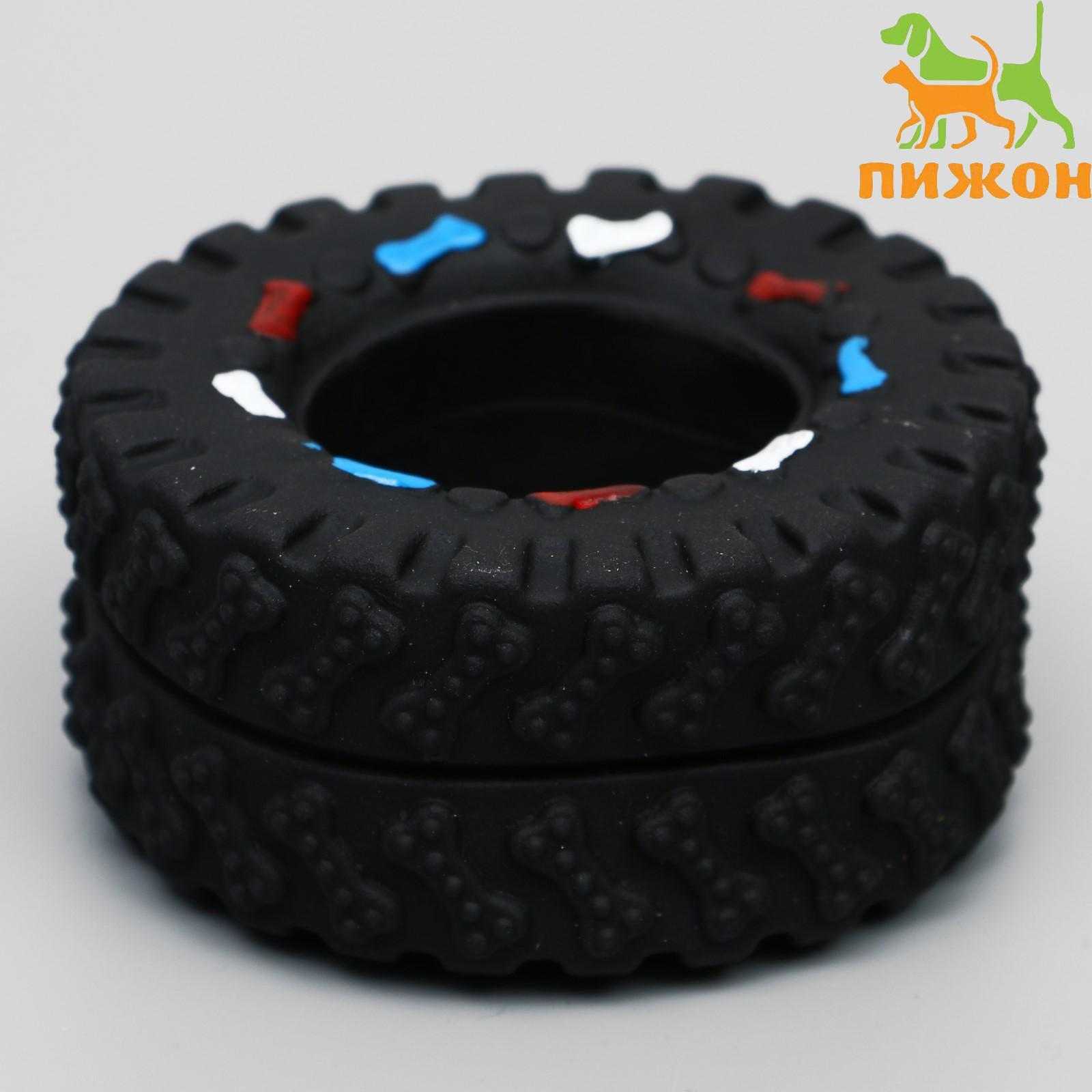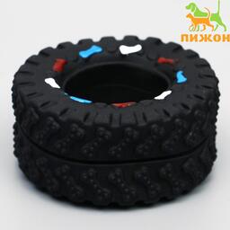 Игрушка пищащая "Покрышка" для собак, 8 см, чёрная