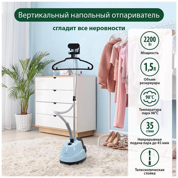 Тип устройства отпариватель / Конструкция напольный / Мощность 2200 Вт /