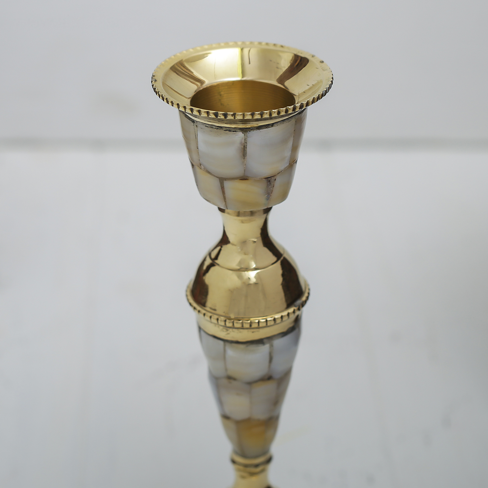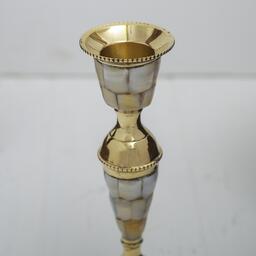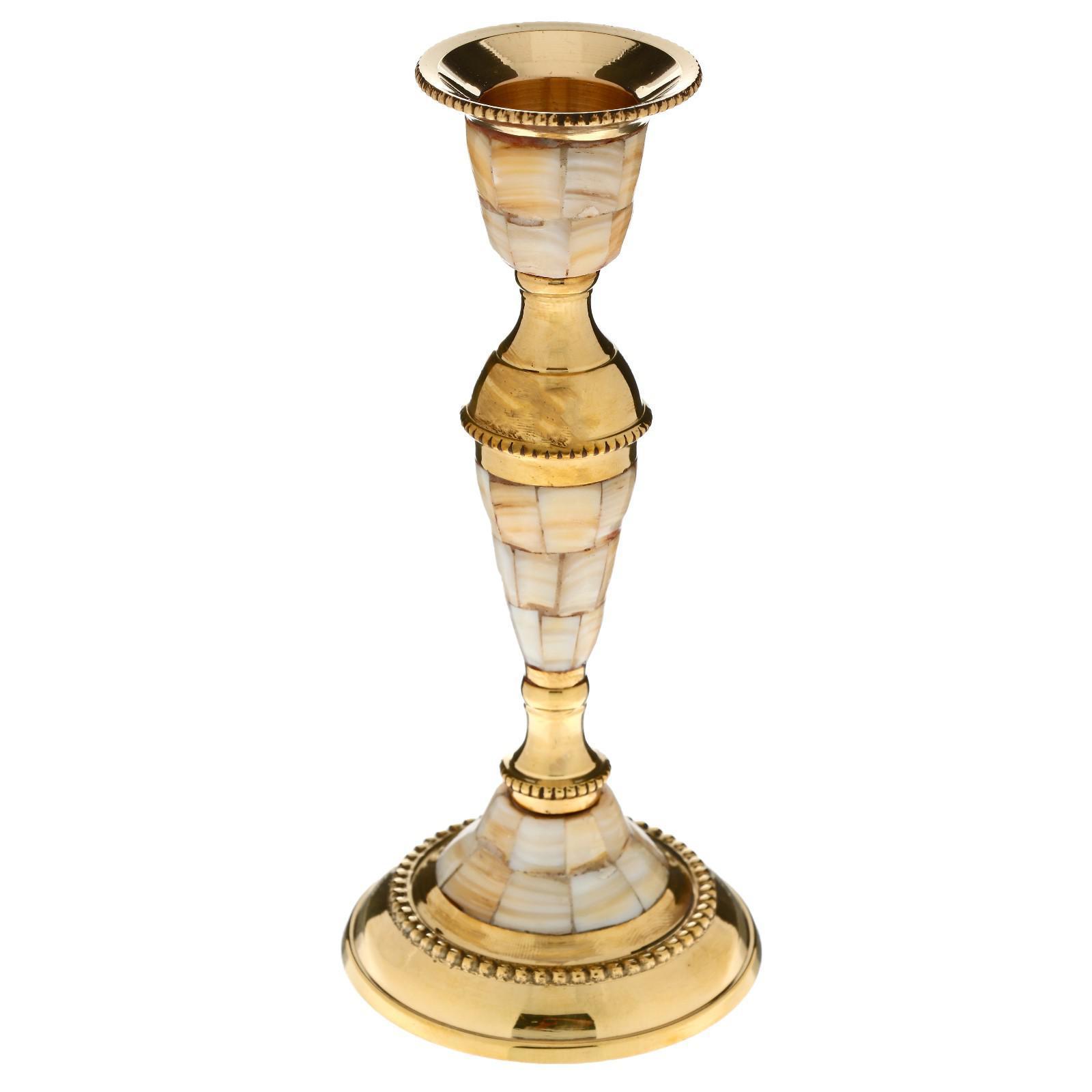 Подсвечник с перламутром "Замок" на 1 свечу, латунь 7,5х7,5х17 см