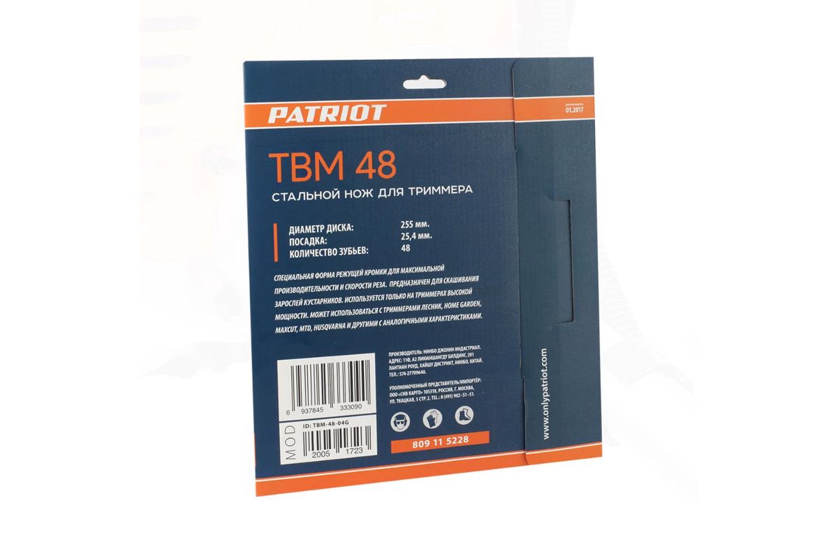 Нож PATRIOT TBM-48 D=255x25.4мм 48 твердосплавных зубьев