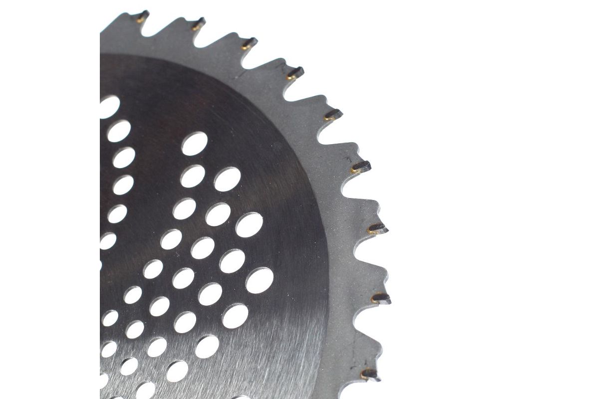 Профессиональный пильный диск для триммера с твердосплавными зубцами. Внешний диаметр 255мм, посадочный диаметр 25.4мм, 36 зубьев. Специальная форма зуба, снижающая отдачу и вибрацию. Упаковка в термоусадочной пленке на картонной подложке