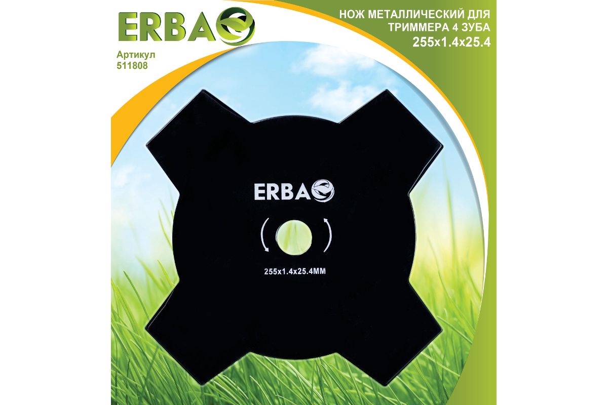 Нож ERBA 511808 металлический для триммера 4 зуба, D 255мм