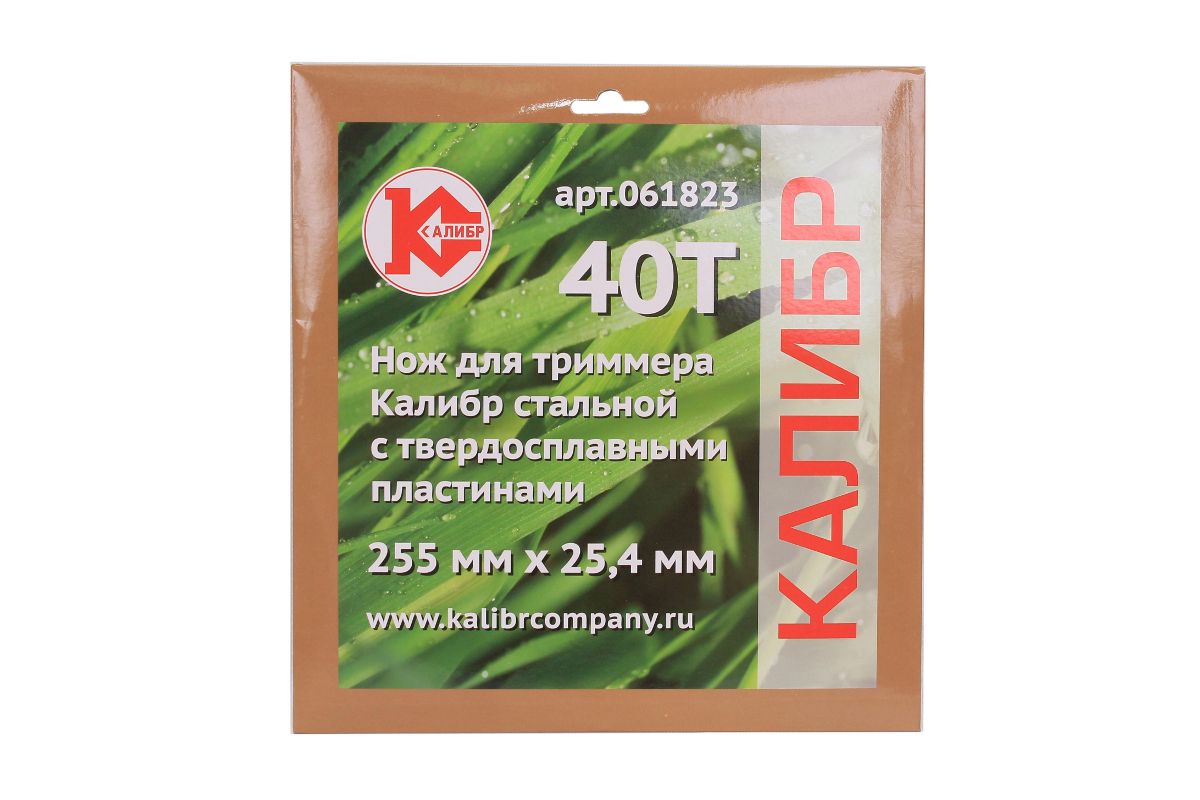 Нож для триммера КАЛИБР 64677 255x25,4x40T (твердосплавный) Тип инструмента Нож для триммера Габариты в упаковке (ДхШхВ) 255x255x8