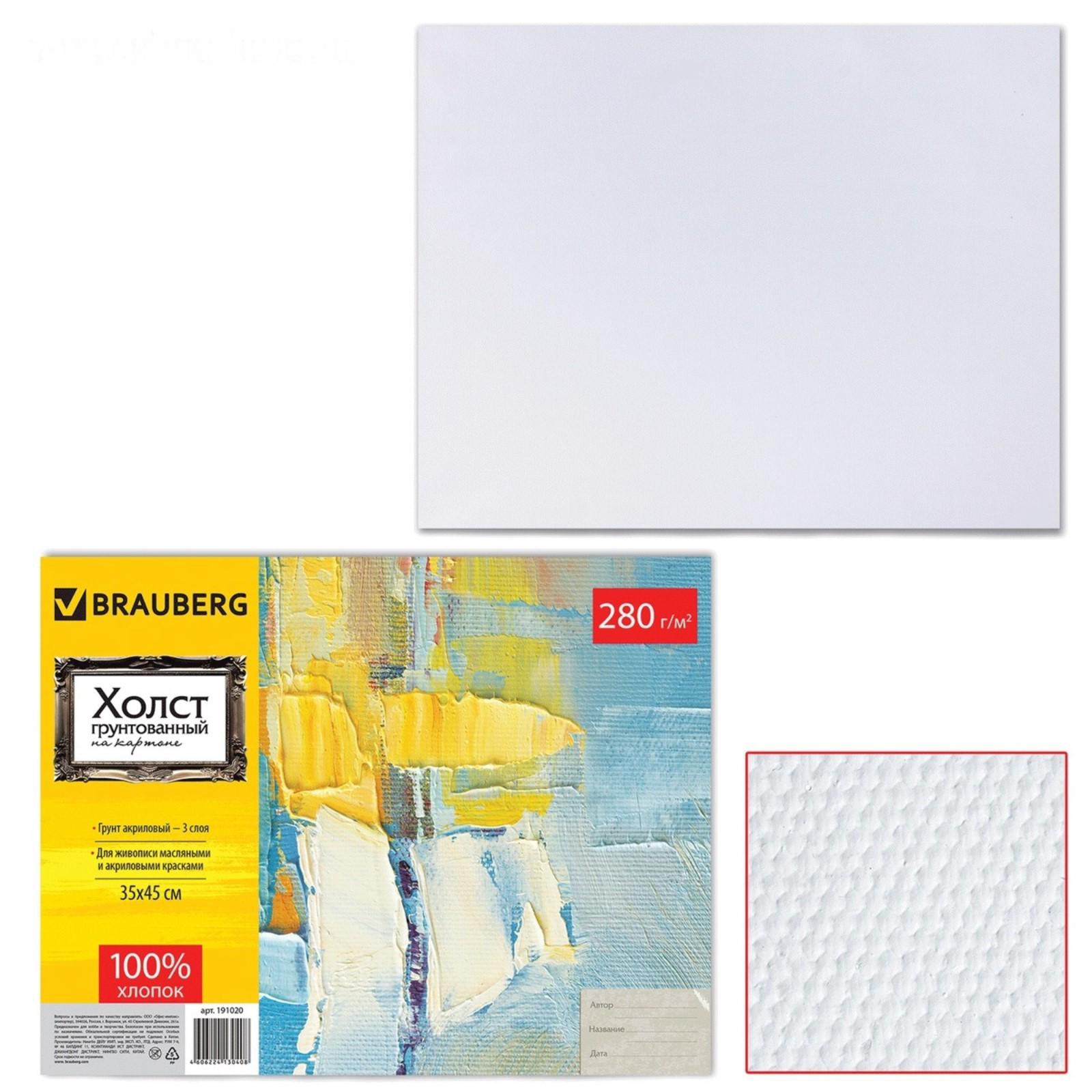 Холст на картоне 35 х 45 см, хлопок 100 %, 2 мм, акриловый грунт, среднезернистый, BRAUBERG ART CLASSIC