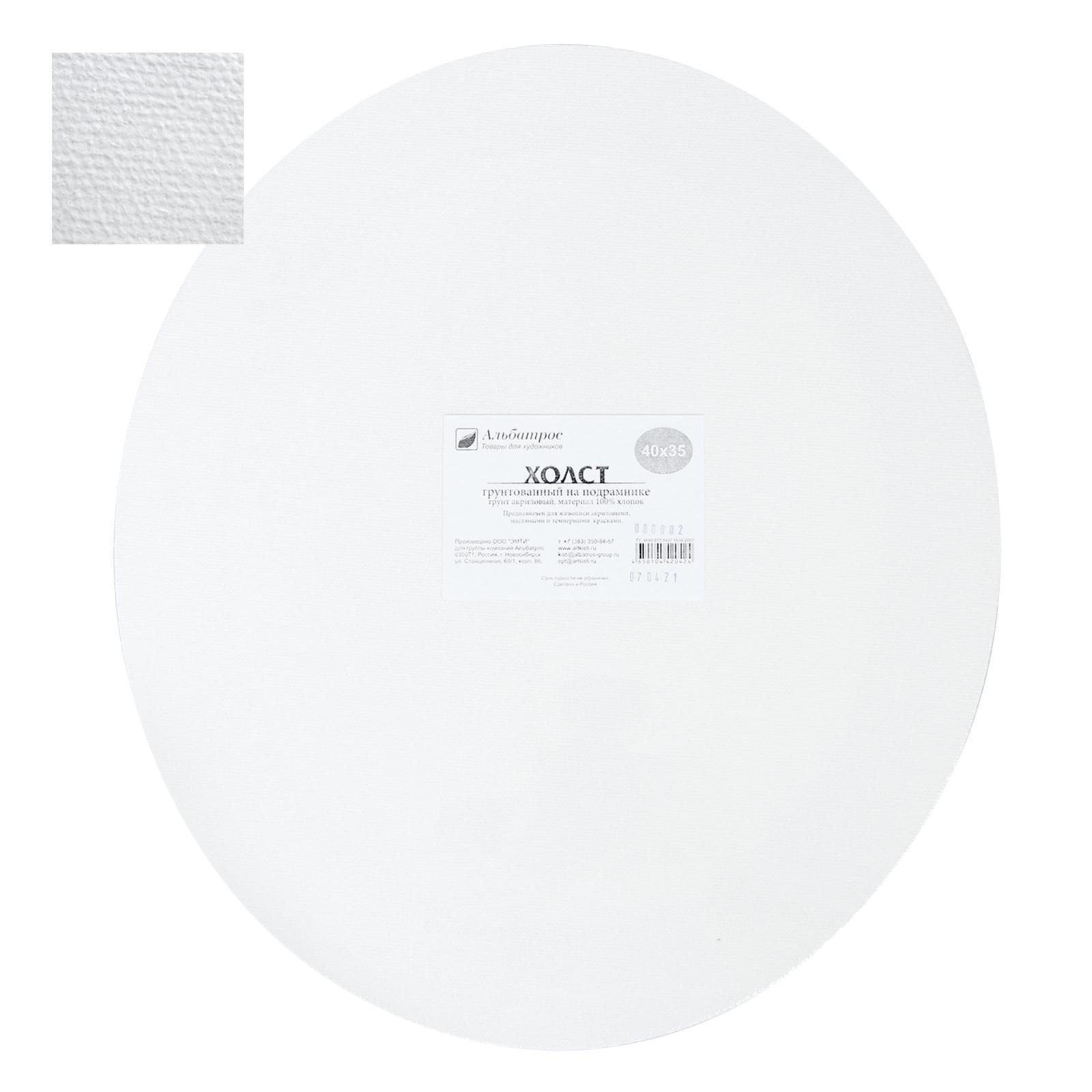 Холст овальный на подрамнике, хлопок 100%, 40 х 35 х 1.2 см, акриловый грунт, 250 г/м², среднезернистый