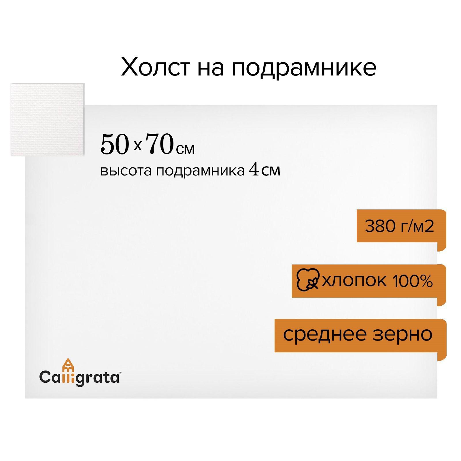 Холст на подрамнике, хлопок 100%, 50 х 70 х 4 см, акриловый грунт, среднезернистый, 380 г/м²