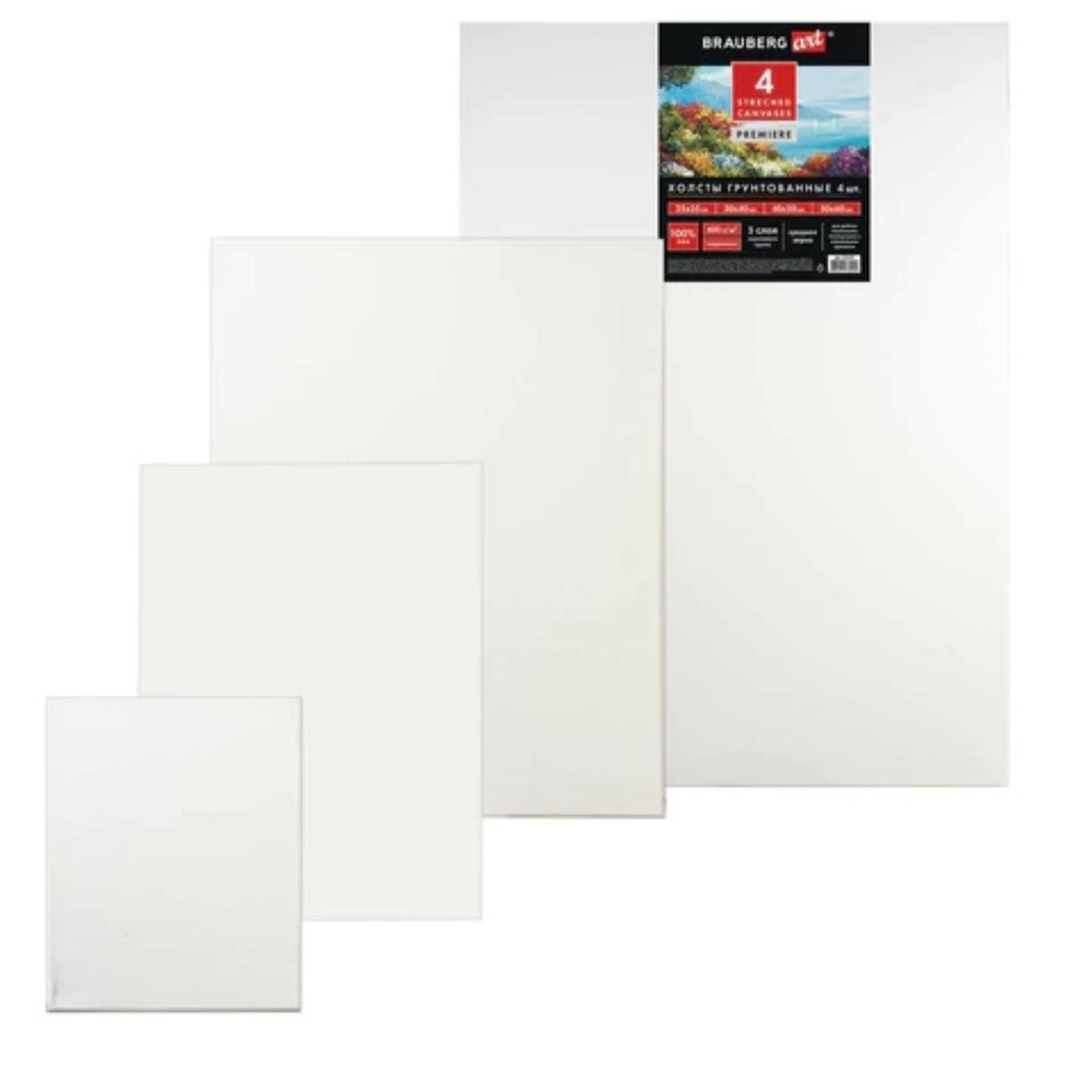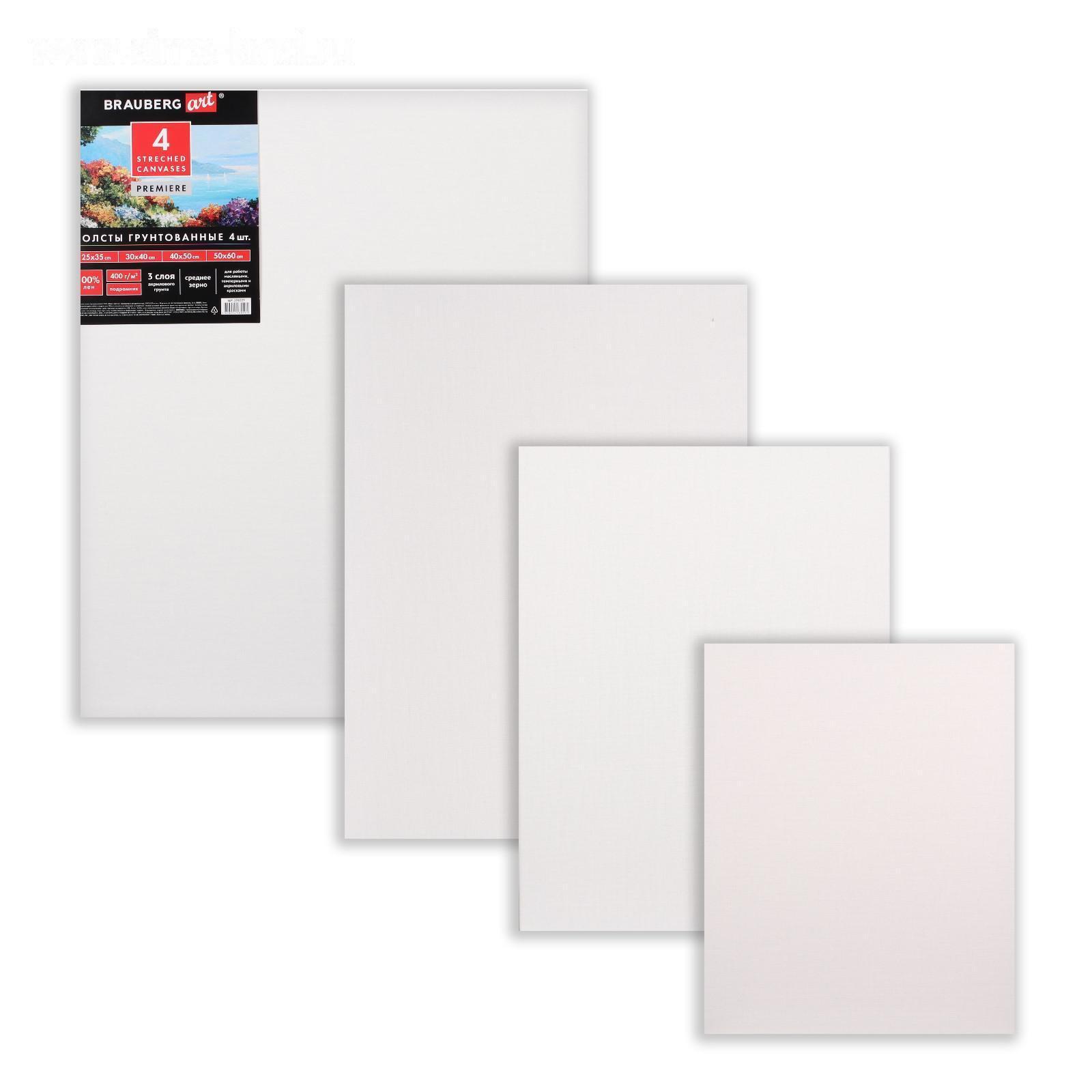 Набор холстов на подрамнике, ЛЕН 100%, 4 штуки (25×35, 30×40, 40×50, 50×60 см), среднезернистый, 400 г/м2