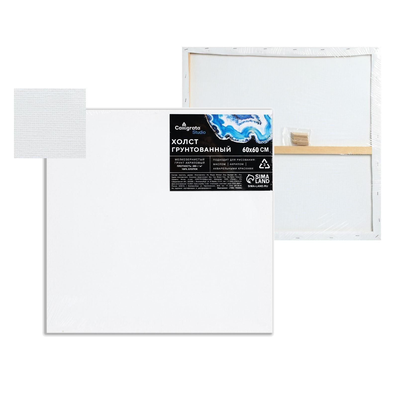 Холст на подрамнике, хлопок 100%, 1.6 х 60 х 60 см, акриловый грунт, мелкозернистый, 280 г/м²