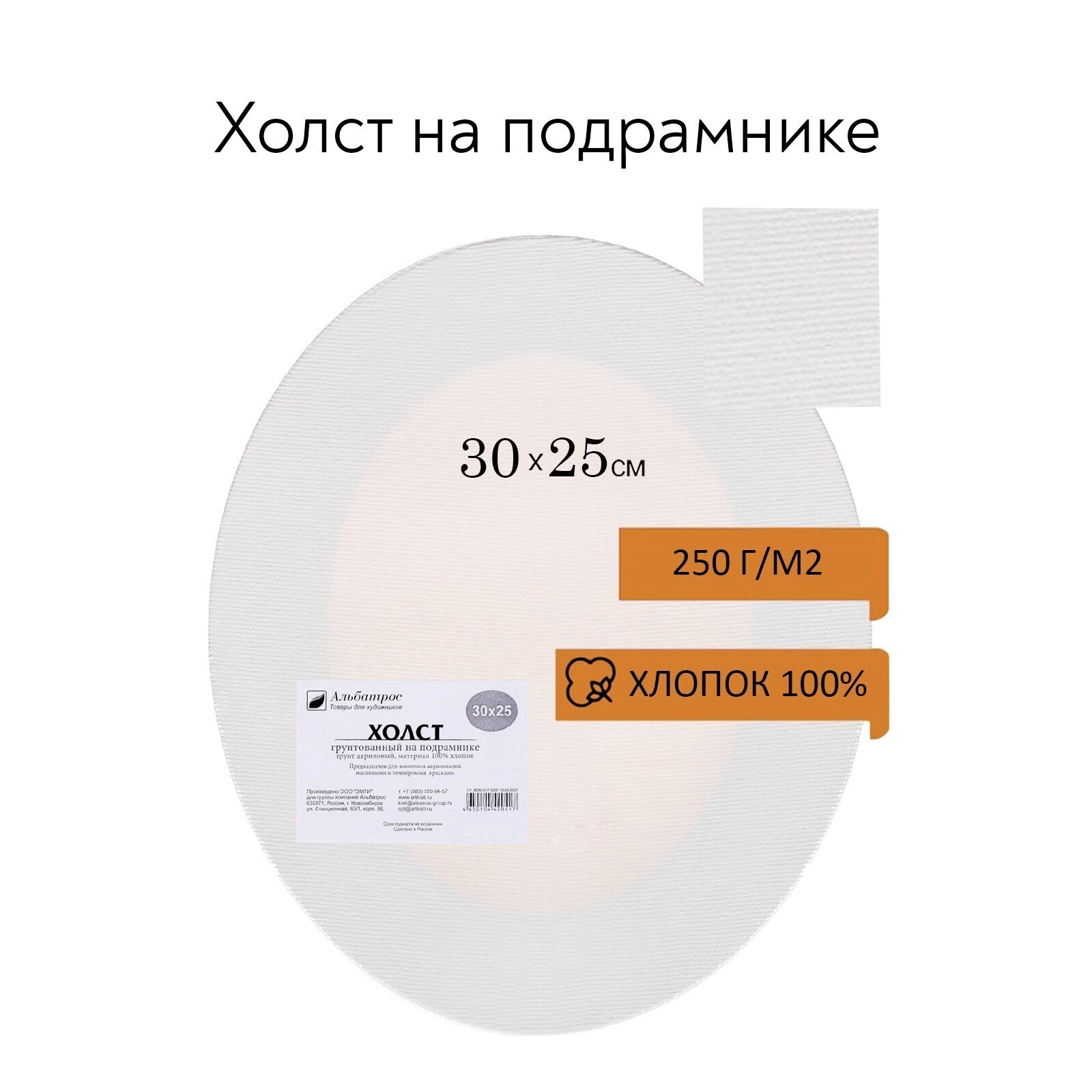 Холст овальный на подрамнике, хлопок 100%, 30 х 25 х 1.2 см, акриловый грунт, 250 г/м², среднезернистый
