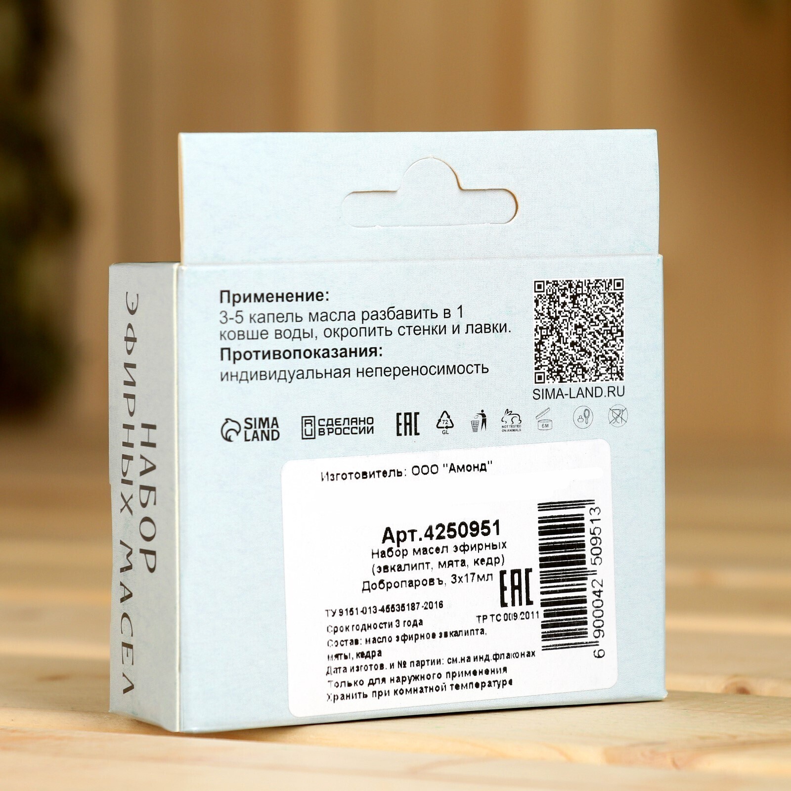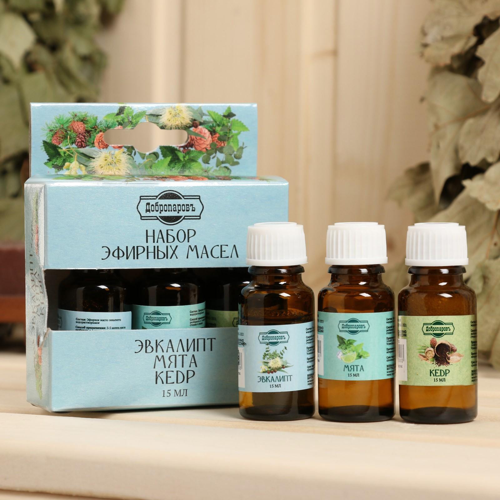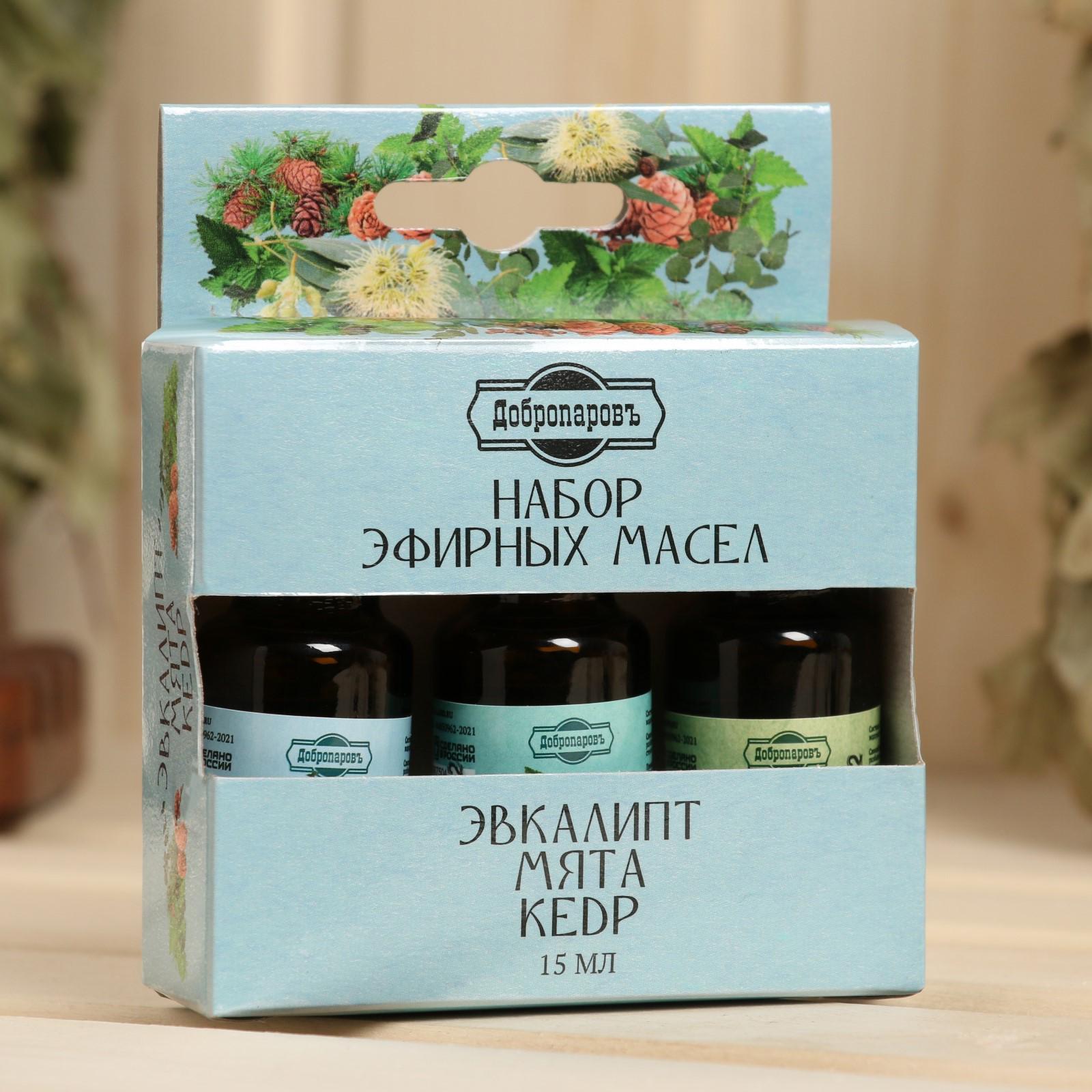Набор эфирных масел эвкалипт, мята, кедр, "Добропаровъ", 3 шт по 15 мл