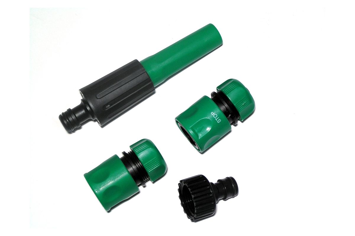 В комплекте: насадка для шланга, коннектор 1/2'', коннектор 1/2'' с автостопом, коннектор для кранов 1/2-3/4''.