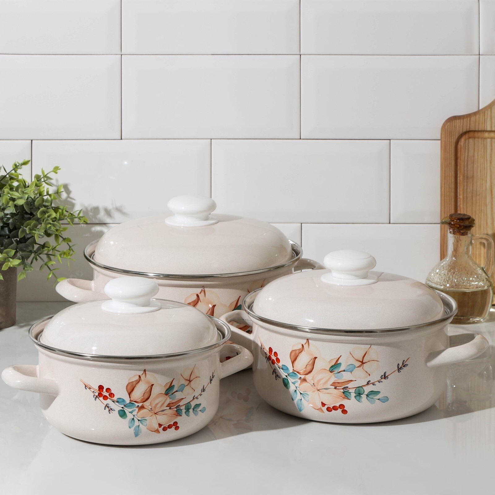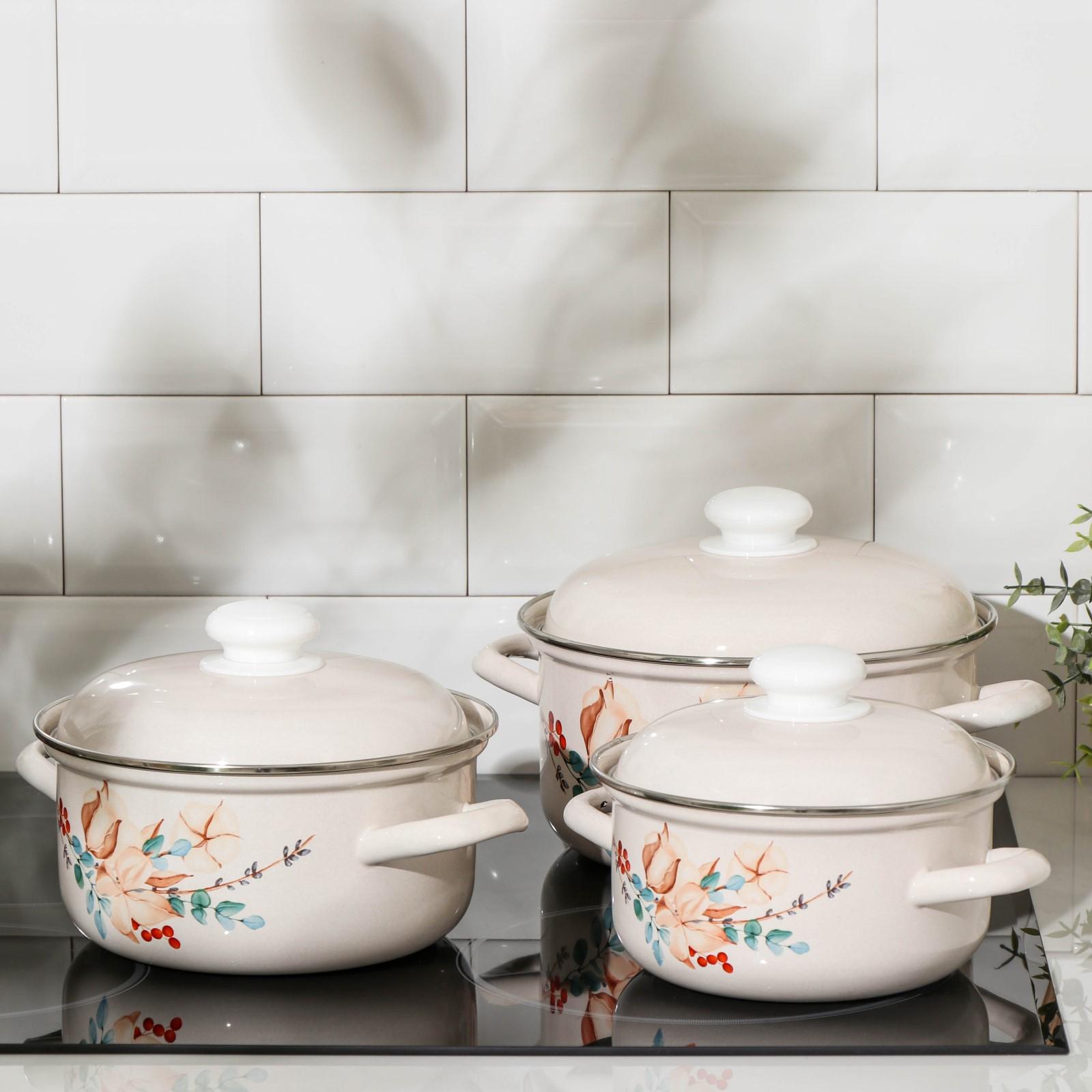 Набор кастрюль «Унесенные ветром», 3 предмета: 1,5 л, 2 л, 3 л, индукция, цвет бежевый