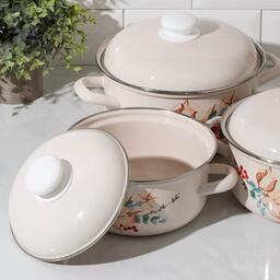 Эмалированная кастрюля отлично подходит для приготовления и хранения различных блюд. Традиционный инструмент пригодится дома и на даче.