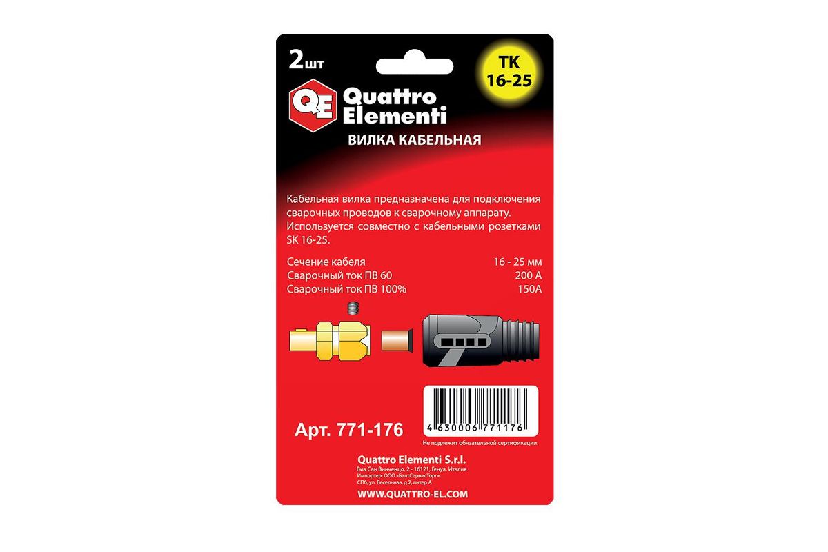 Кабельный разъем QUATTRO ELEMENTI вилка сварочного кабеля ТК 16-25 ( до 200 А/45В) 2 шт в блистере