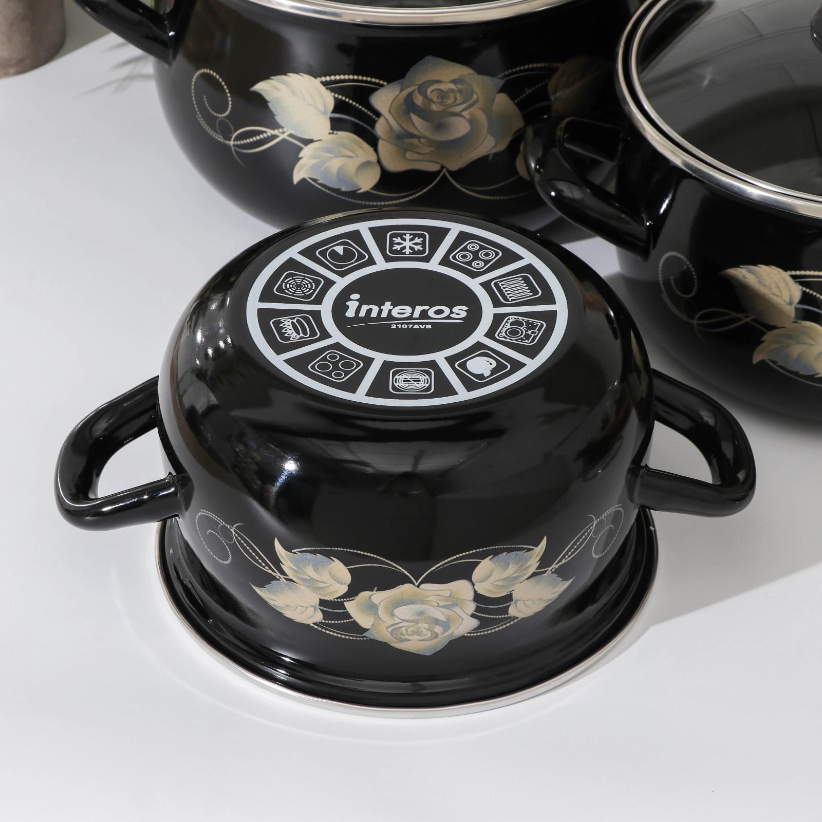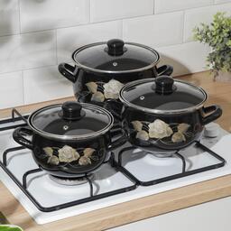 Кастрюли сделаны из качественной стали, покрытой эмалью с декоративным рисунком. Они отлично подходят для приготовления и хранения различных блюд.