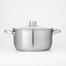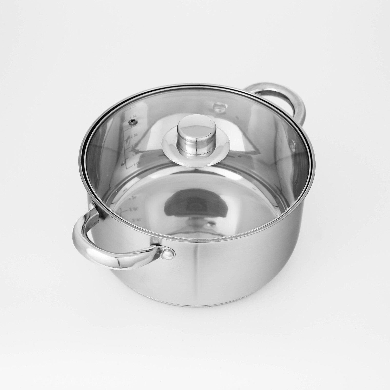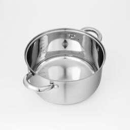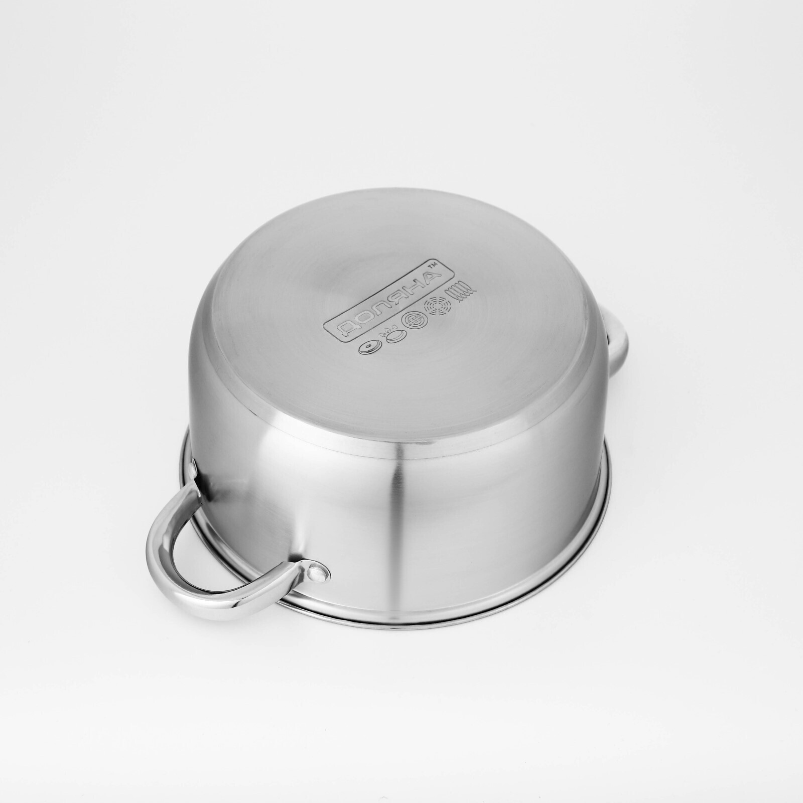 Кастрюли выполнены из нержавеющей стали марки AISI 201. Металл быстро проводит тепло и противостоит коррозии. Благодаря капсулированному дну посуду можно использовать на индукционной плите.