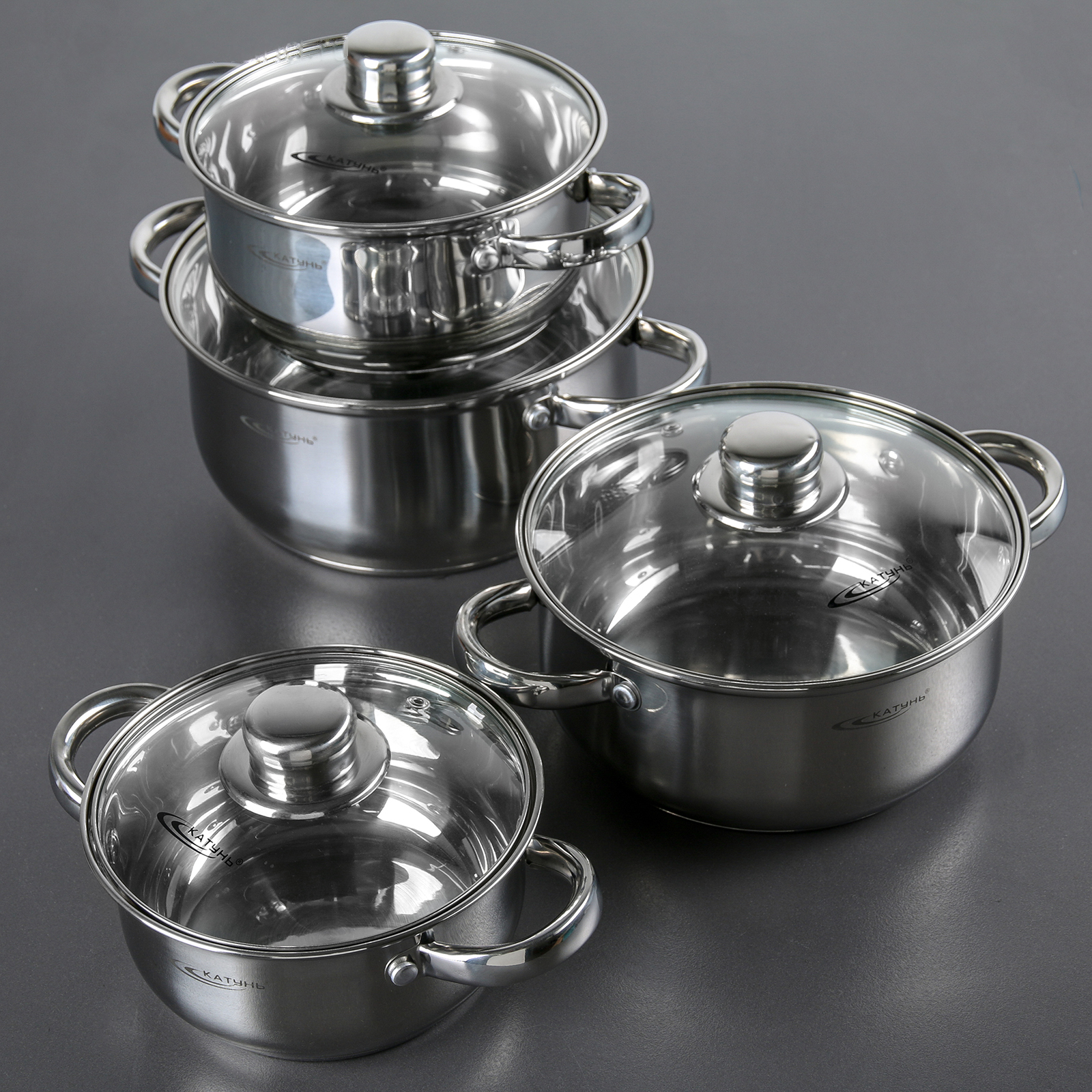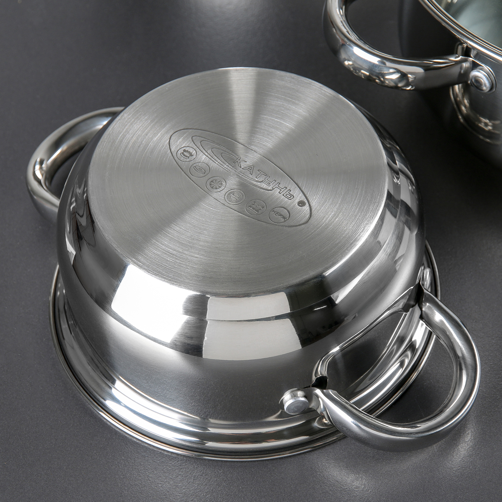 Набор кастрюль «Гретта», 4 предмета: 1,6/2,2/3,2/4,2 л, крышки, капсульное дно, индукция подходит для всех видов плит. Изделие выполнено из стали, прошедшей зеркальную полировку. Толщина стенок составляет 0,4 мм. Крышка G-типа оснащена удобной пароотводной системой. Ручки прикреплены по технологии клепочной фиксации.