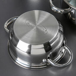 Важно отметить, что посуда серии "Гретта" имеет капсулированное дно, то есть в изделие вплавлена алюминиевая пластина. Такое строение позволяет модели быстрее нагреваться и лучше распределять тепло.