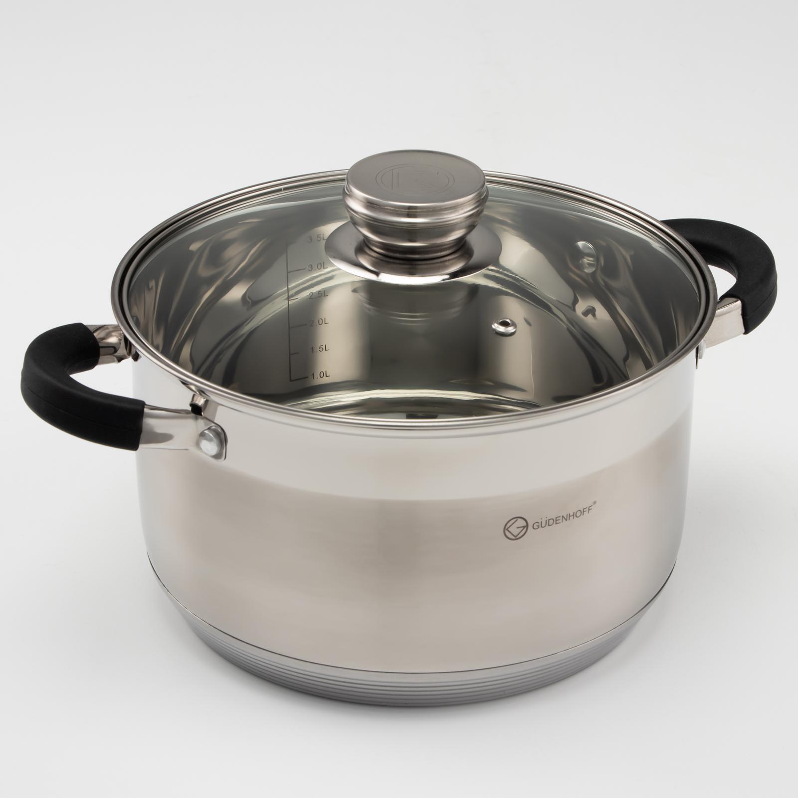 Набор кастрюль «Сильвер», 3 предмета: 5 л, 6,5 л, 7,7 л, d=22 см, d=24 см, d=26 см, чёрные ручки, стеклянные крышки