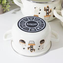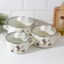 Кастрюли сделаны из качественной стали, покрытой эмалью с декоративным рисунком. Они отлично подходят для приготовления и хранения различных блюд.