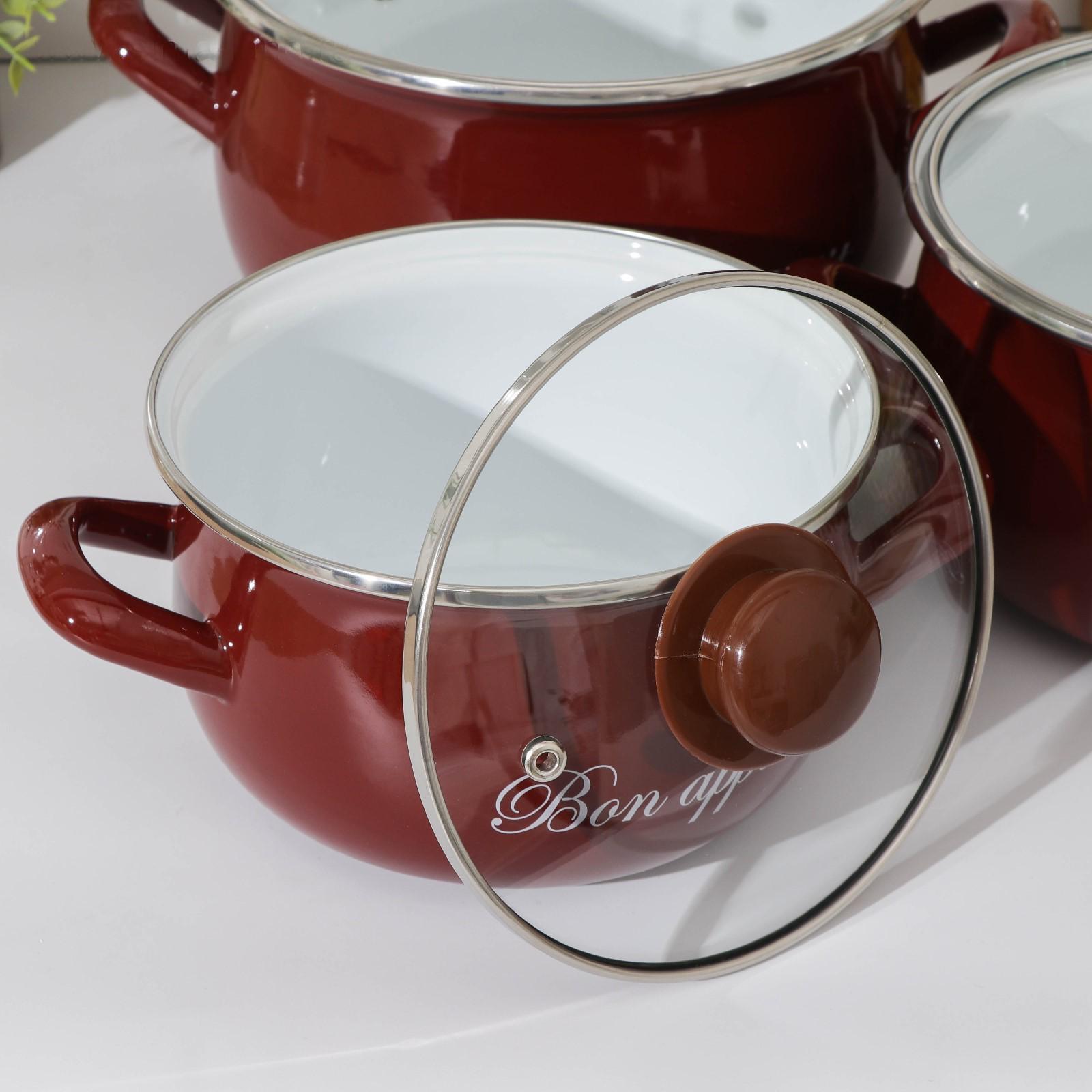 Набор кастрюль «Бордо», 3 предмета: 2,1 л, 3,1 л, 4 л, индукция, цвет бордовый