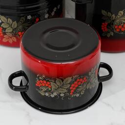Набор кастрюль «Рябинка», 3 предмета: 3,5/5,5/8 л, эмалированные крышки, индукция, цвет чёрно-красный