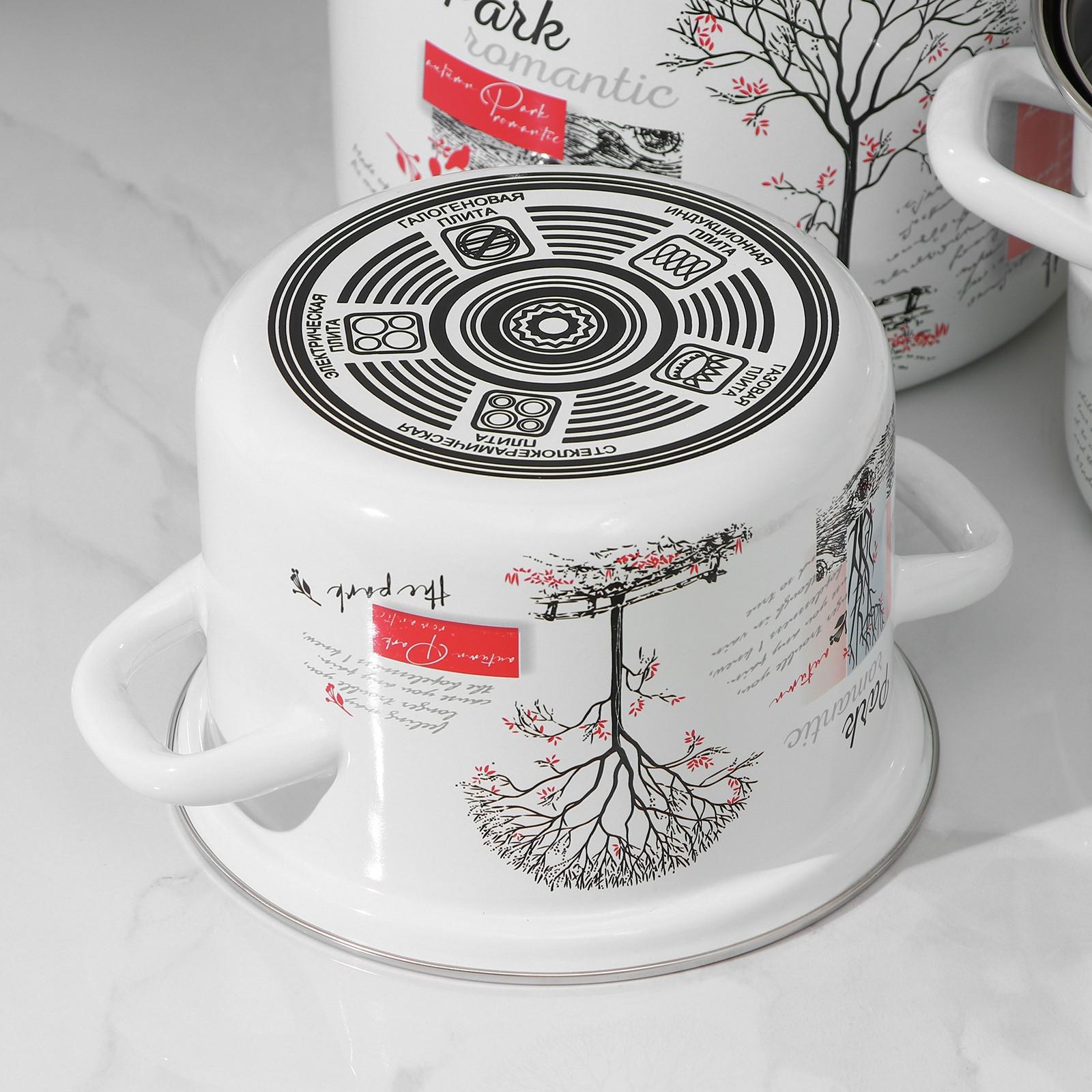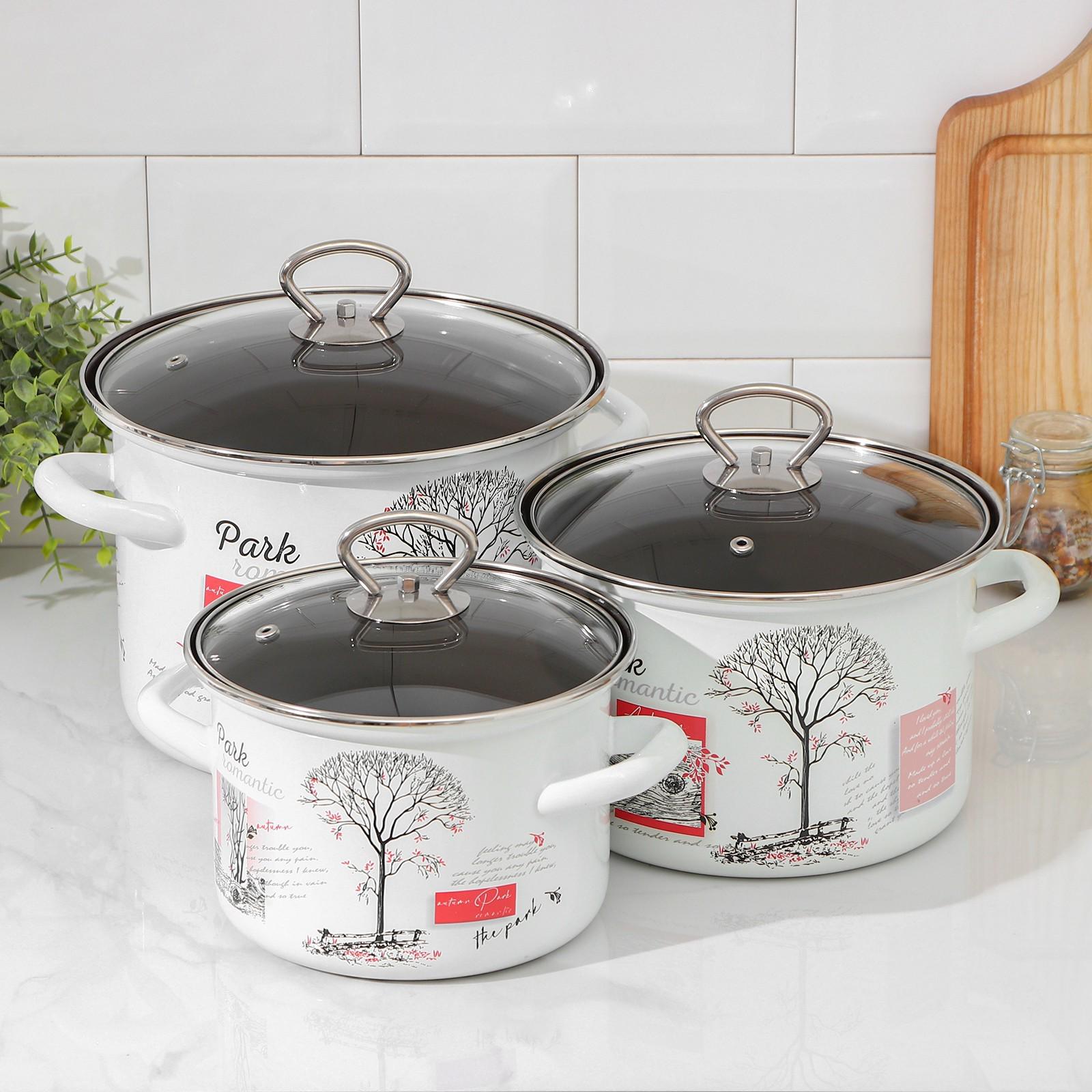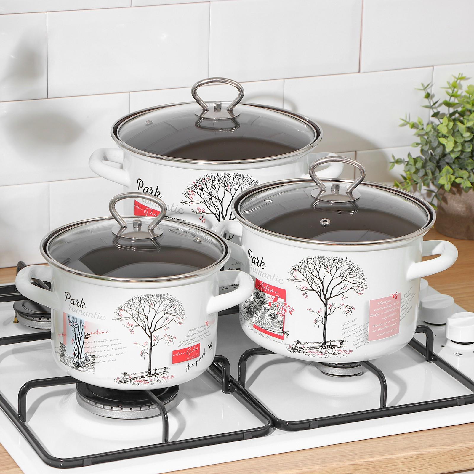 Набор кастрюль «Осенний парк. Люкс», 3 предмета: 2,4 л, 3,4 л ,5 л, стеклянные крышки, индукция, цвет белый