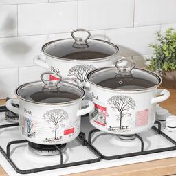 Кастрюли сделаны из качественной стали, покрытой эмалью с декоративным рисунком. Они отлично подходят для приготовления и хранения различных блюд.