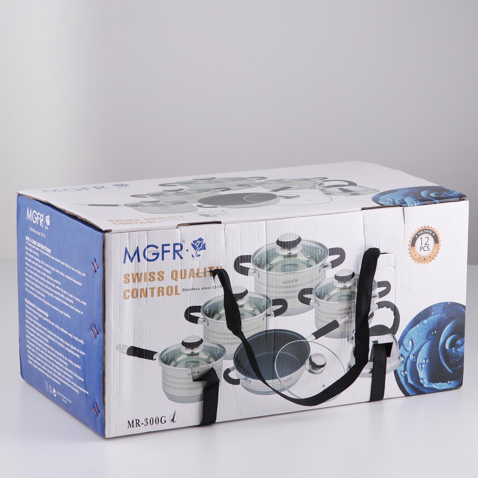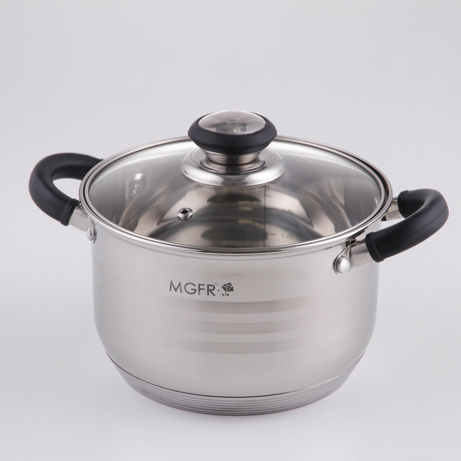 Набор посуды, 6 предметов: чайник 3,5 л, ковш d=16 см, кастрюли d=18, d=20, d=24 см, сковорода d=24 см, стеклянные крышки, индукция