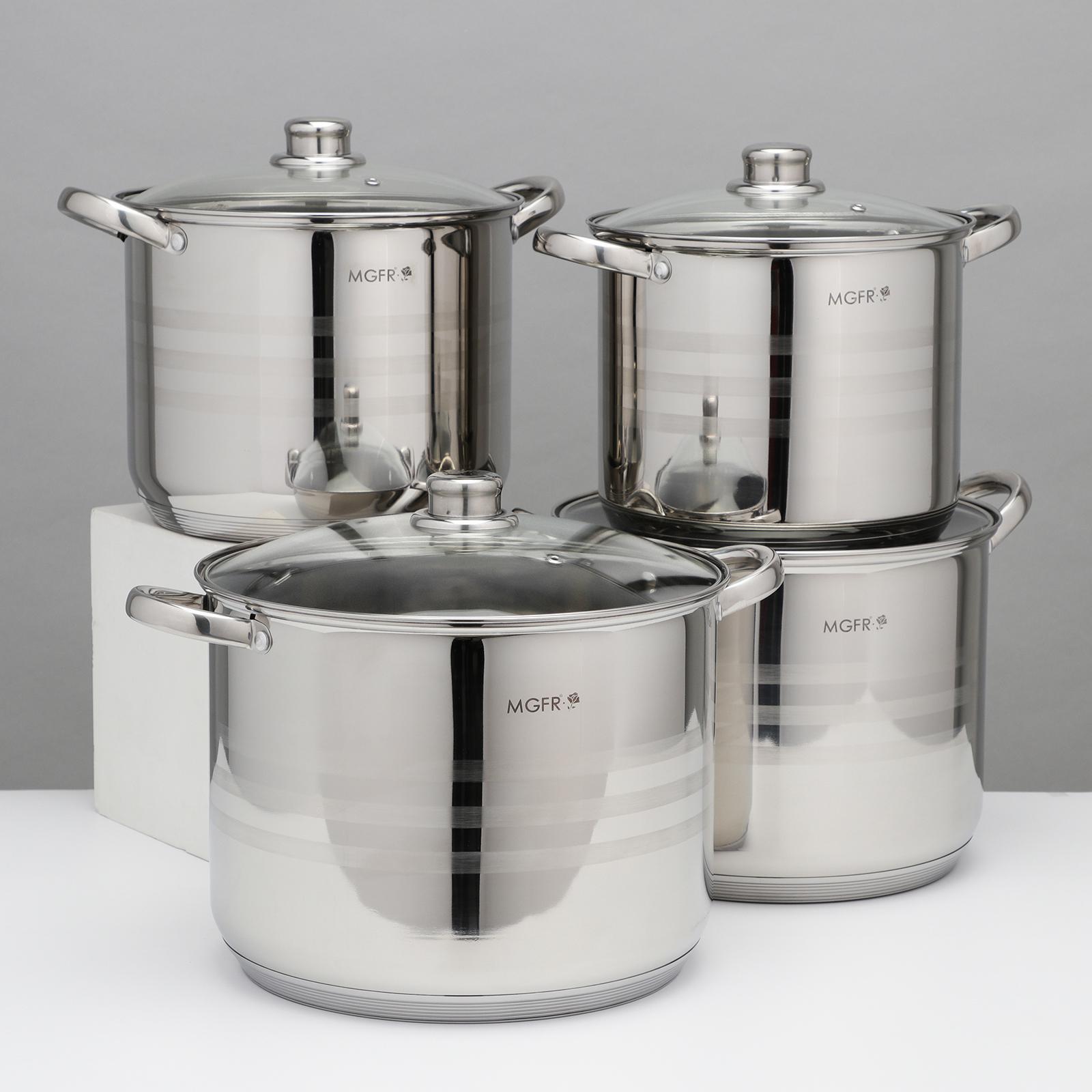 Набор кастрюль «Абель», 4 предмета: 7 л, 9 л, 10 л, 12 л, стеклянные крышки, индукция