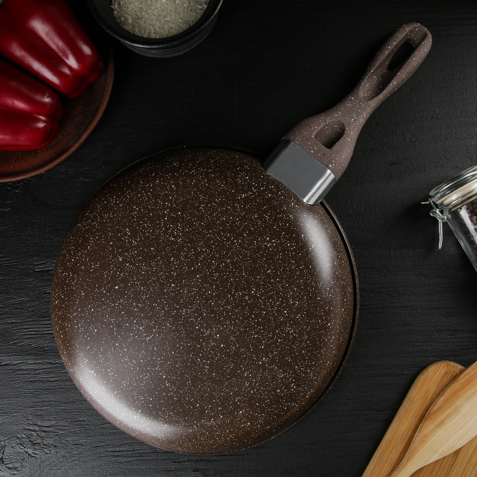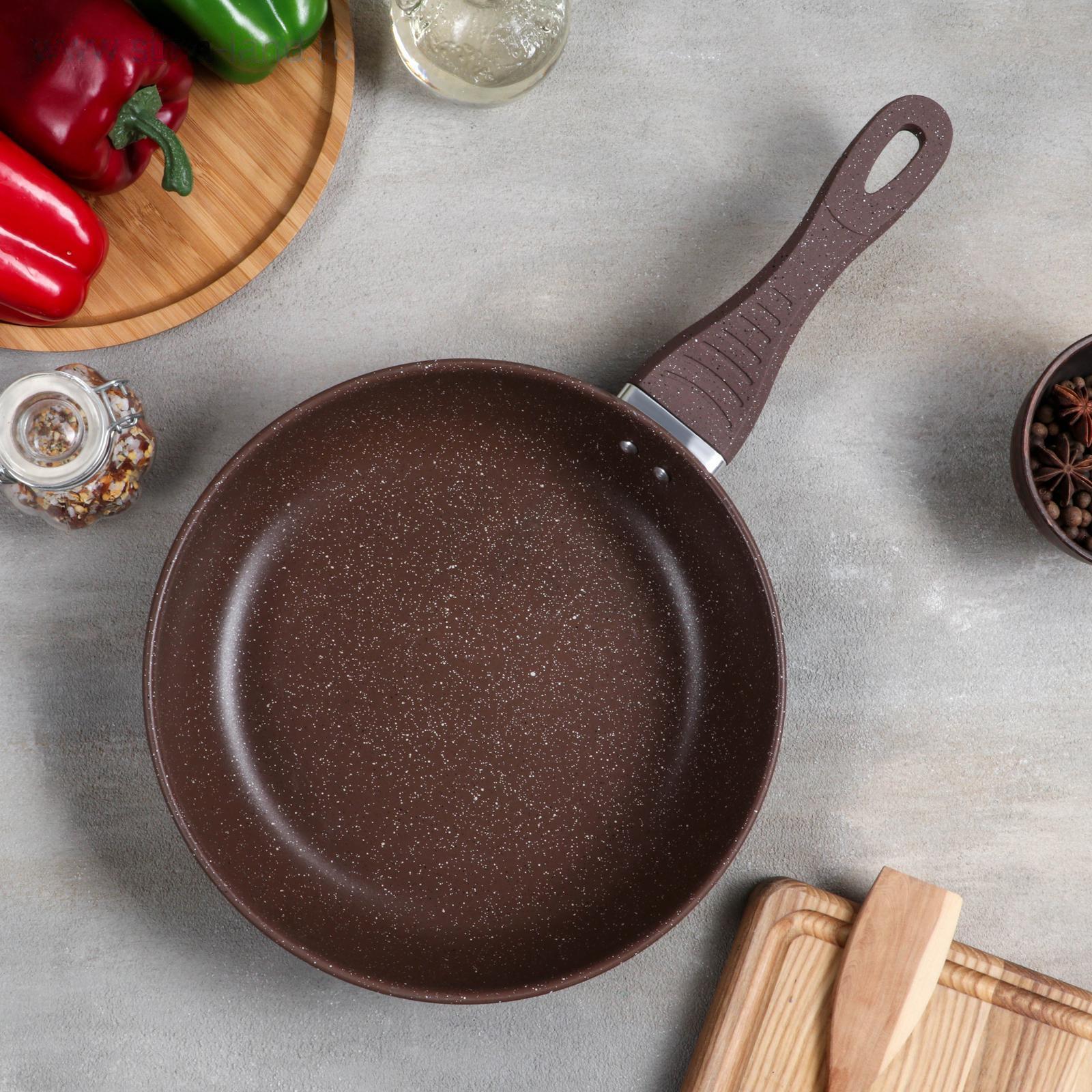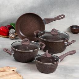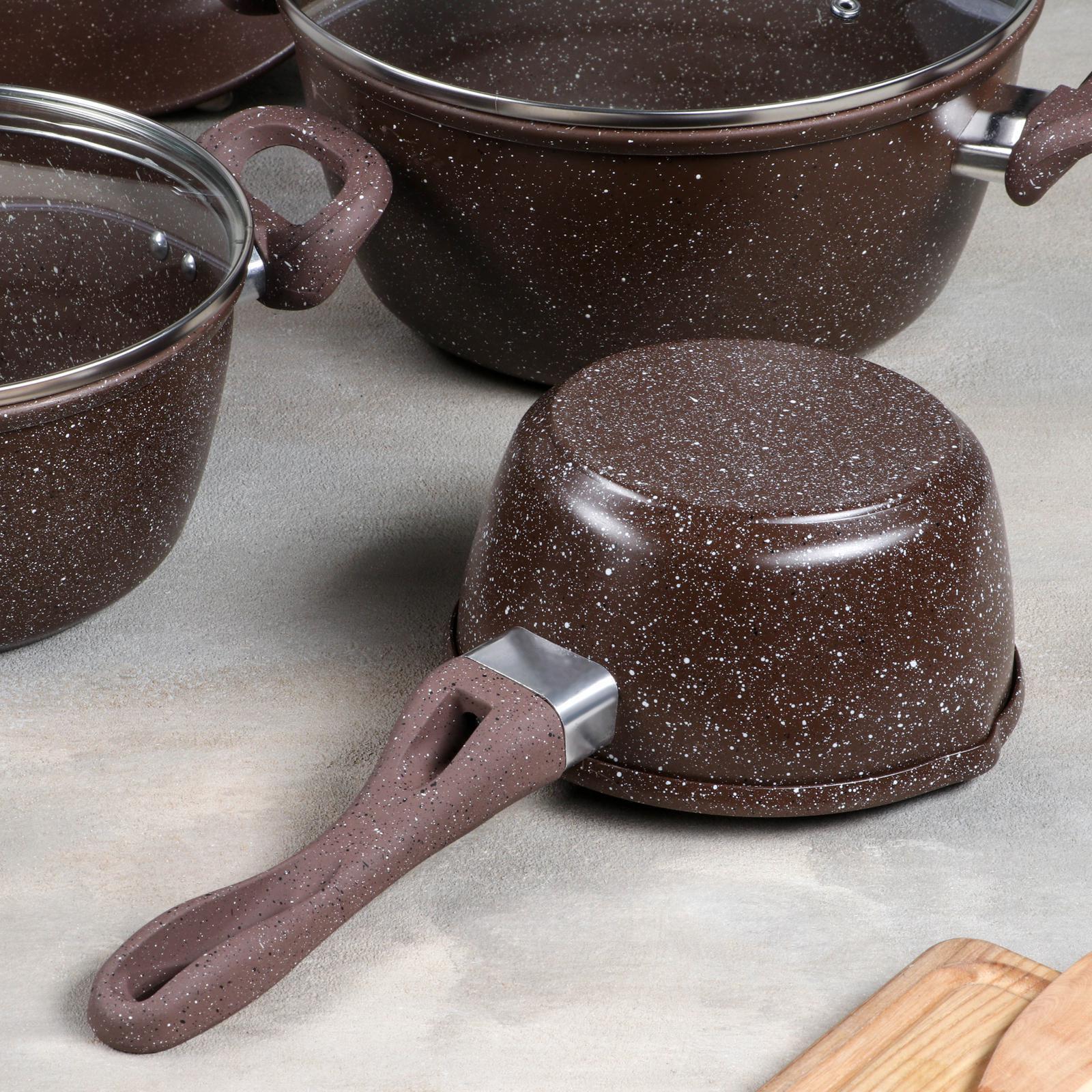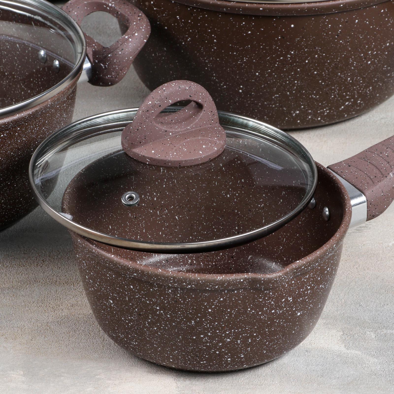 Набор посуды, 4 предмета: кастрюля 3,5 л, сотейник 1,5 л, ковш 800 мл, сковорода d=24 см, стеклянные крышки, антипригарное покрытие, цвет коричневый